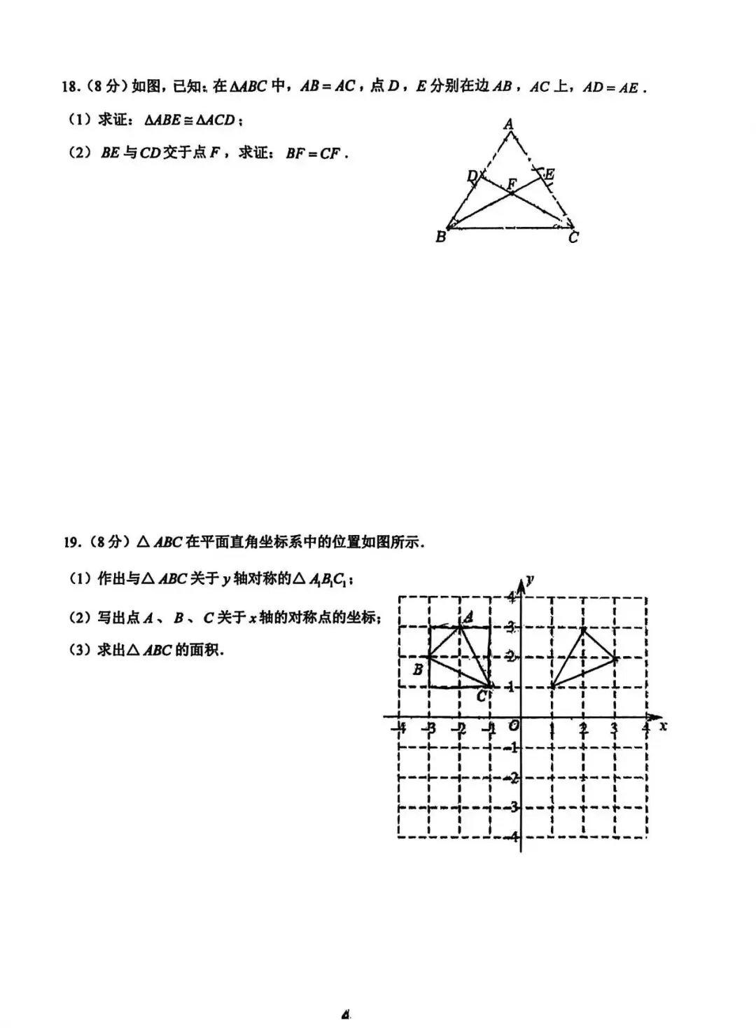 邯郸汉光中学八年级上数学期末考试卷--可打印
