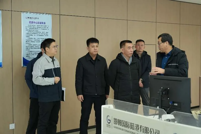 近日,中储粮邯郸储备有限公司总经理杜朝辉、办公室副主任何慧亮一行到访邯郸陆港,进行实地考察与业务交流。邯郸陆港董事长张海权、总经理刘涛、副总经理安守国陪同调研并参与座谈。