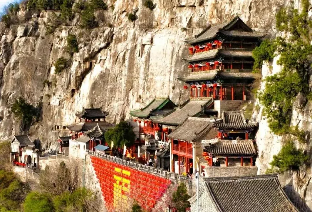 娲皇宫位于涉县索堡镇,是祭祀女娲的古建筑群,也是全国五大祭祖圣地之一,被誉为“华夏祖庙”,其悬空建筑群依山而建,气势恢宏。它是国家5A级景区。