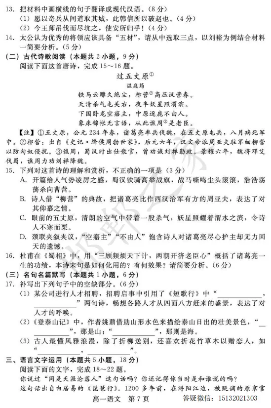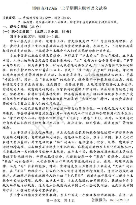 当前位置:首页>邯郸>邯郸市NT20高一上学期期末联考语文试卷含答案