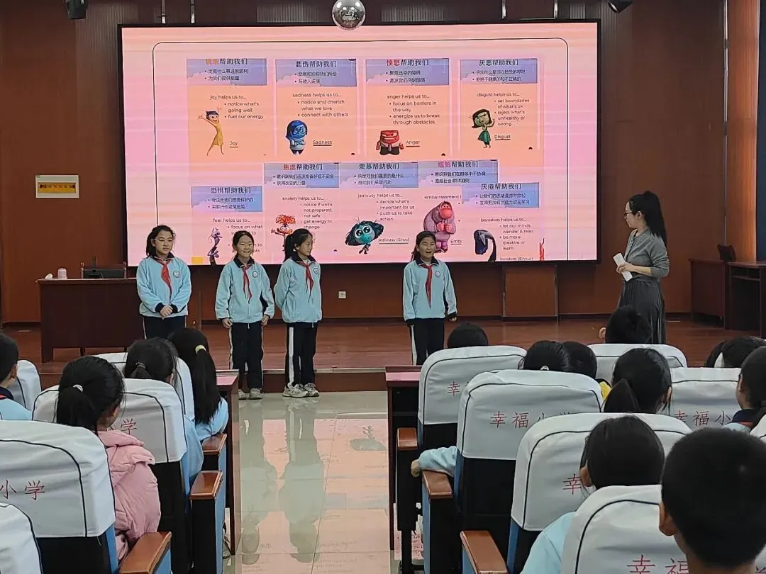 在幸福小学,磐林心理李思琦老师通过案例讲解、互动卡片交流等形式,引导学生认识情绪、表达感受,并学习实用的调适技巧。同时,李老师也细致梳理了教师工作中的压力来源,传授了快速恢复心理能量、保持积极状态的策略,助力师生增长应对日常挑战的心理韧性。