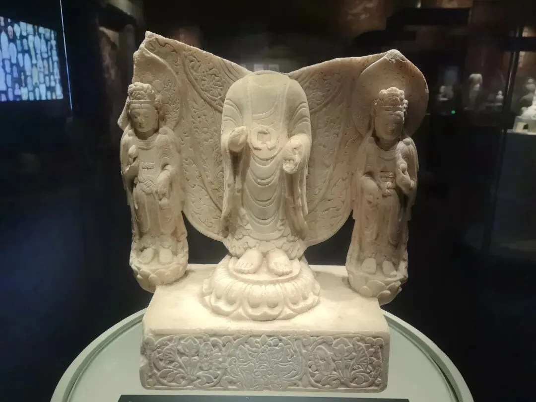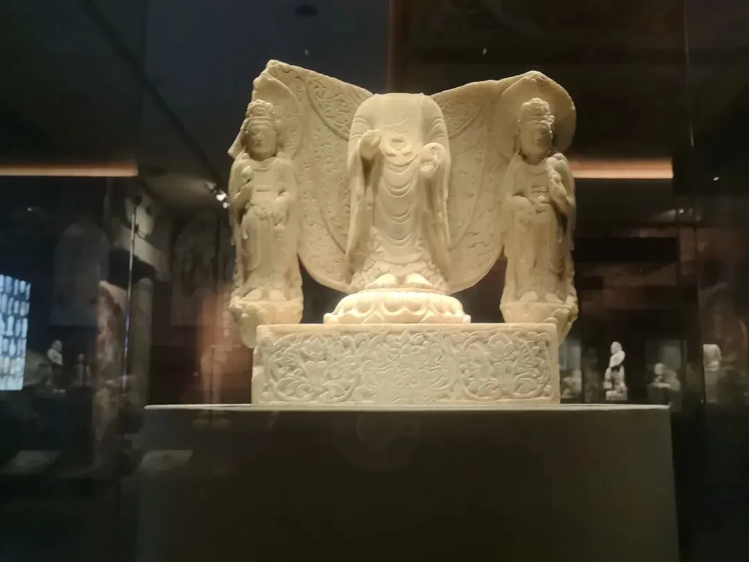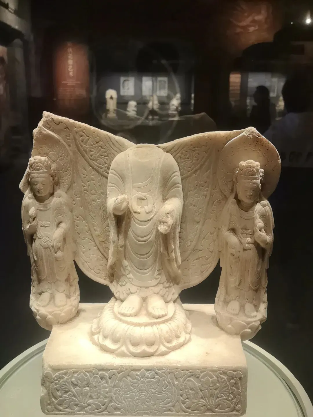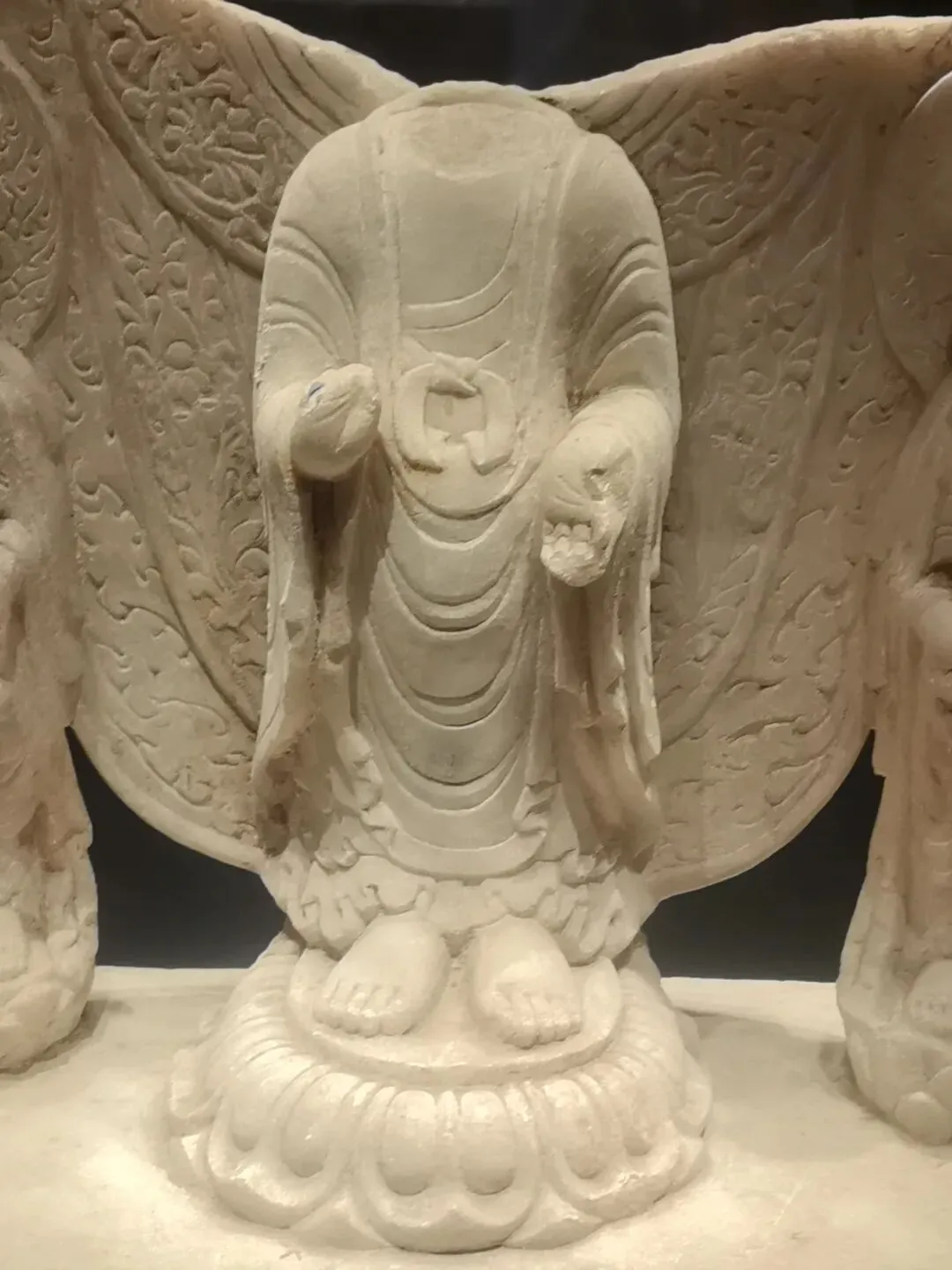 东魏安德长公主造释迦三尊像,汉白玉石质,背屏式造像,但现在背屏上部已残损,主尊佛首不知在何处,出土于成安南街村寺庙遗址。成安之名,取“成就成功,安康平安”之意。在东魏北齐时期,成安属于邺城的京畿重地和附属区域,直接隶属于以邺城为核心的行政体系,因此在成安出现寺庙遗址则不足为奇了。