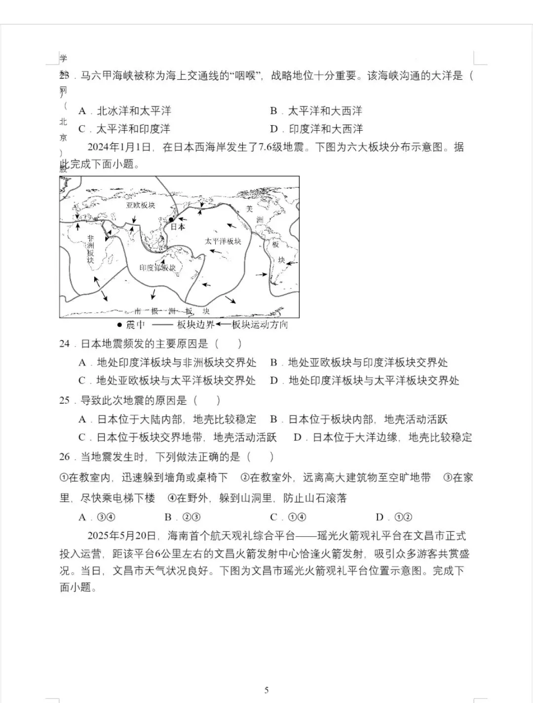 四、地理常识与灾害避险