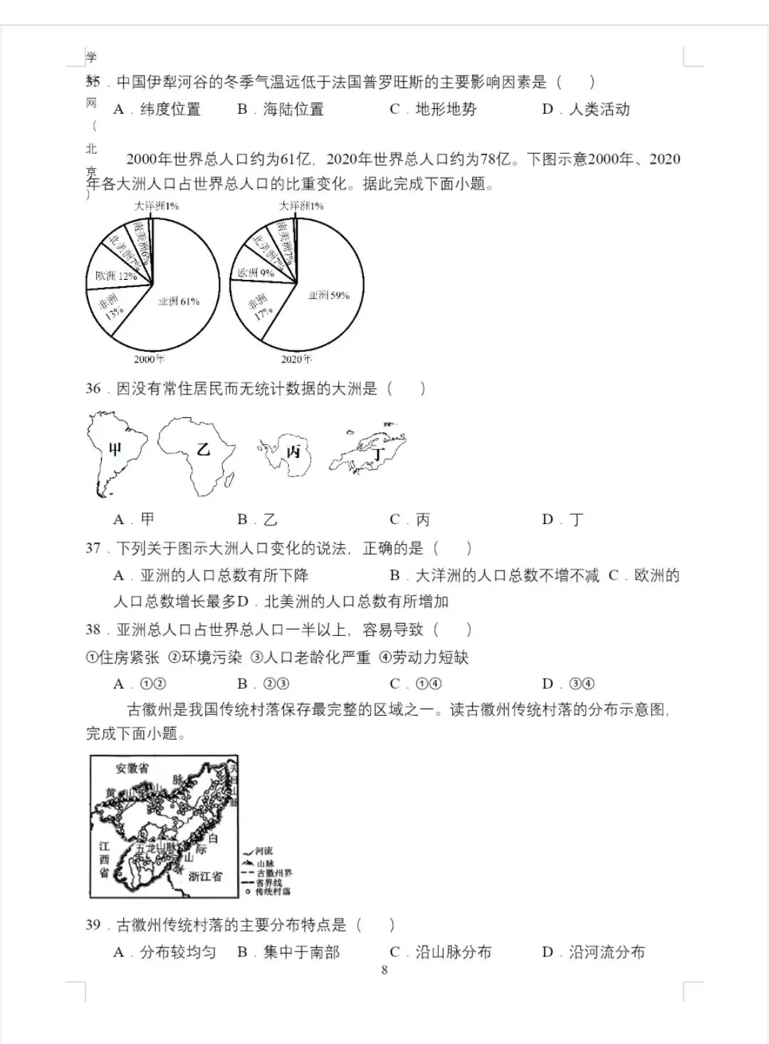 3. 世界人口:亚洲人口最多;人口增长过快带来住房紧张、环境污染等问题;南极洲无常住人口。
