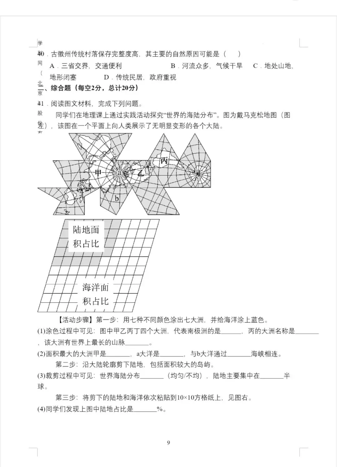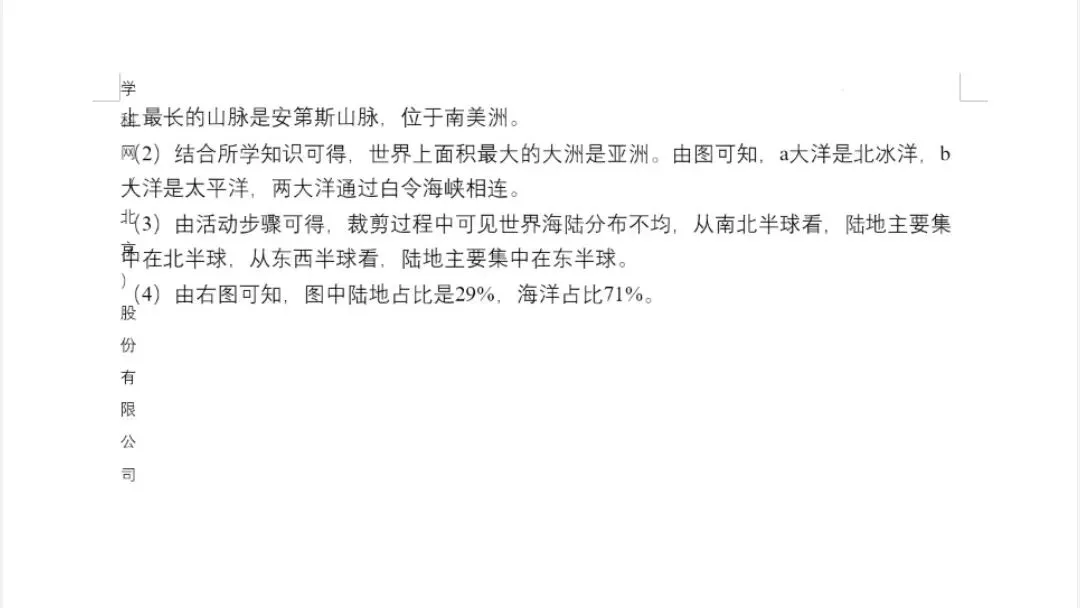 解析:由活动步骤可得,裁剪过程中可见世界海陆分布不均,从南北半球看,陆地主要集中在北半球,从东西半球看,陆地主要集中在东半球。