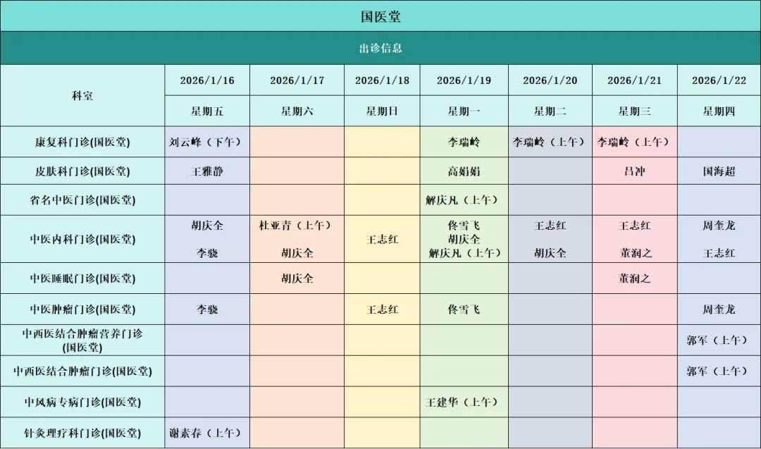 >邢台市人民医院国医堂一周出诊信息(1月16日-1月22日)