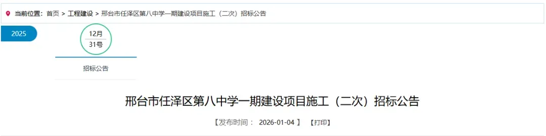 本招标项目邢台市任泽区第八中学一期建设项目施工(二次)(项目名称)已由邢台市任泽区行政审批局(项目审批、核准或备案机关名称)以邢台市任泽区行政审批局关于邢台市任泽区第八中学一期建设项目初步设计的批复(任行审投资批[2023]46号)(批文名称及编号)批准建设,项目业主为邢台市任泽区教育局,建设资金来自一般债劵(资金来源),项目出资比例为100%,招标人为邢台市任泽区教育局。项目已具备招标条件,现对该项目的施工进行公开招标。