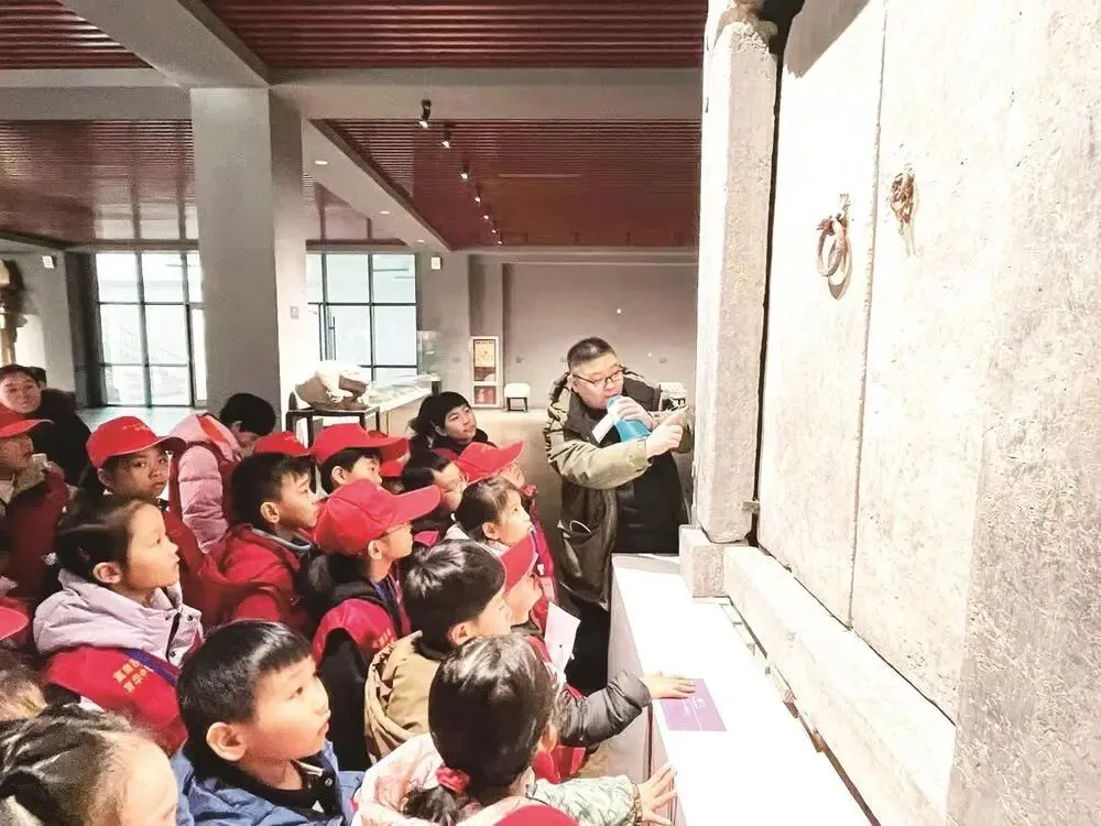 随后,王老师又相继给小记者们介绍了汉代“马上封侯”画像石、唐代石像生、汉代山水宴乐升仙石刻、北齐奚君墓志铭、东魏棺床、北朝莲花柱础与佛塔砖等珍贵文物。