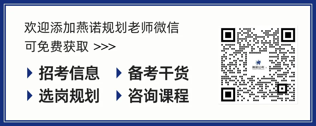 ◎欢迎添加燕诺规划老师微信,免费获取招考信息、备考干货、选岗规划、咨询课程