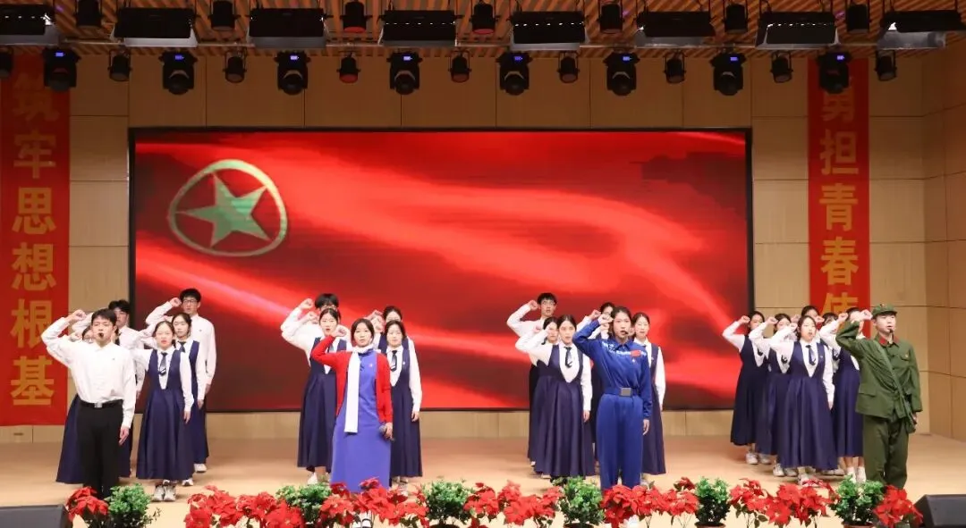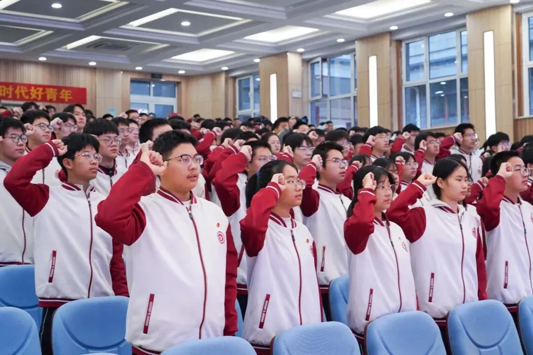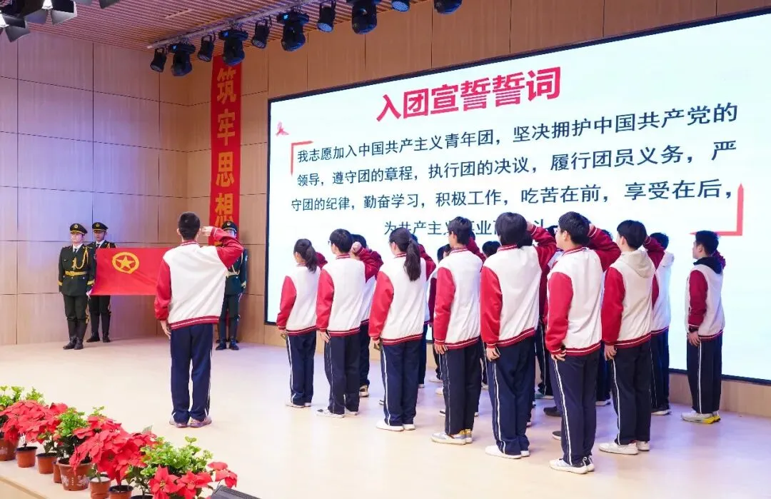 面向鲜红的团旗,团员们高举右拳,庄严宣誓:“我志愿加入中国共产主义青年团……”誓言铮铮回荡,如星火般照亮筑梦征途。