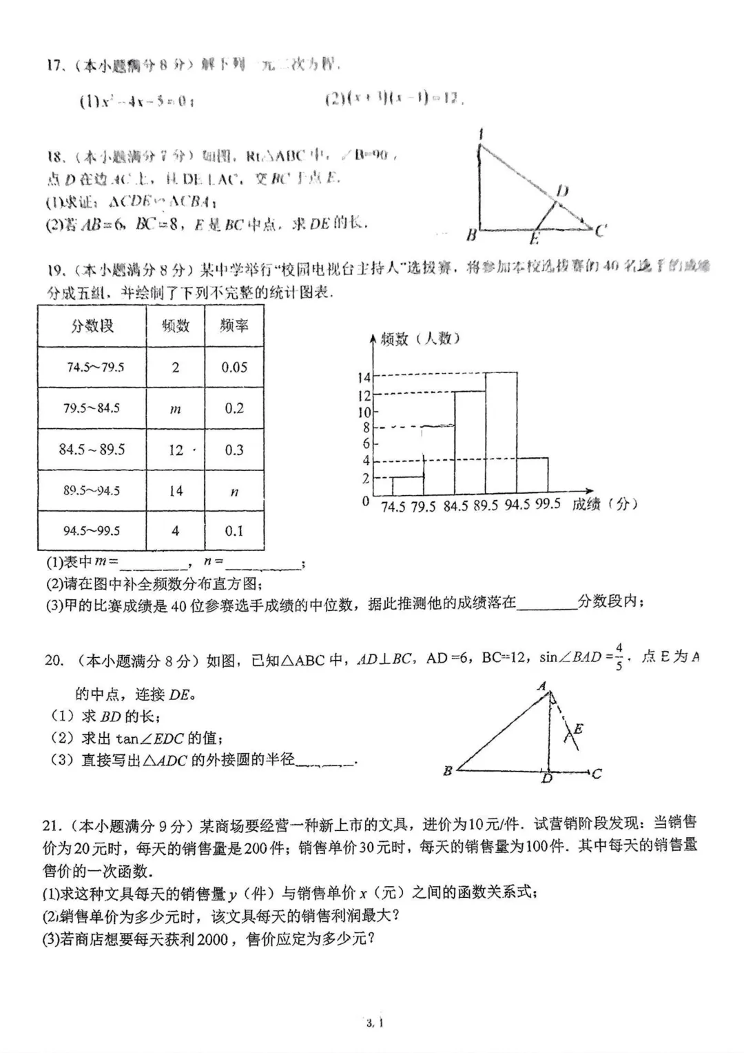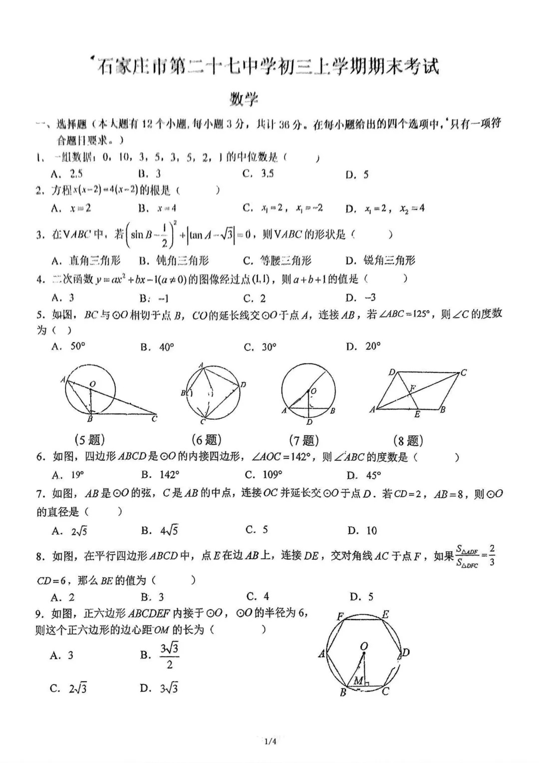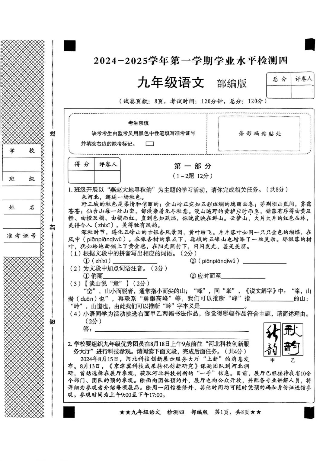 2025.1邢台市七八九年级期末全科试卷含答案(可下载)