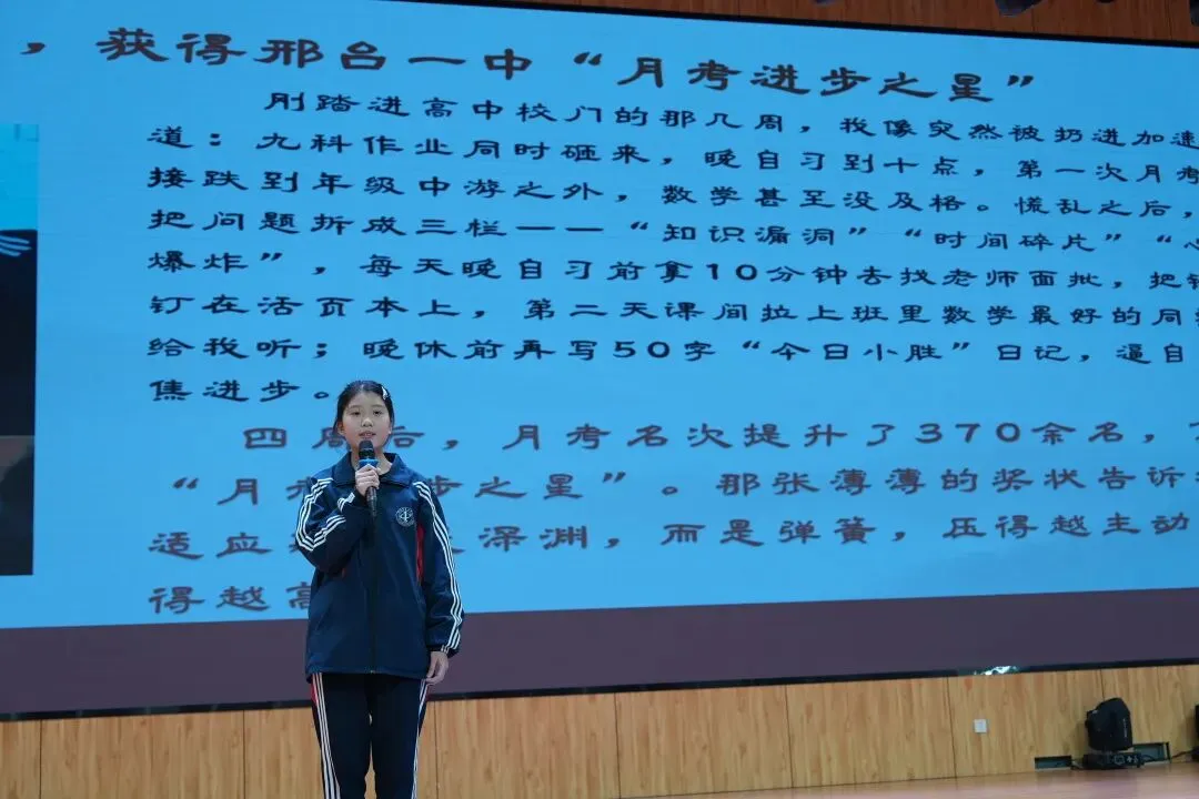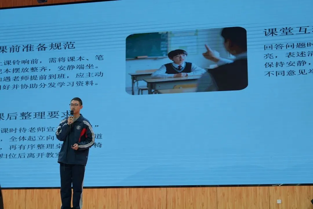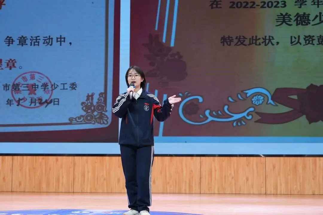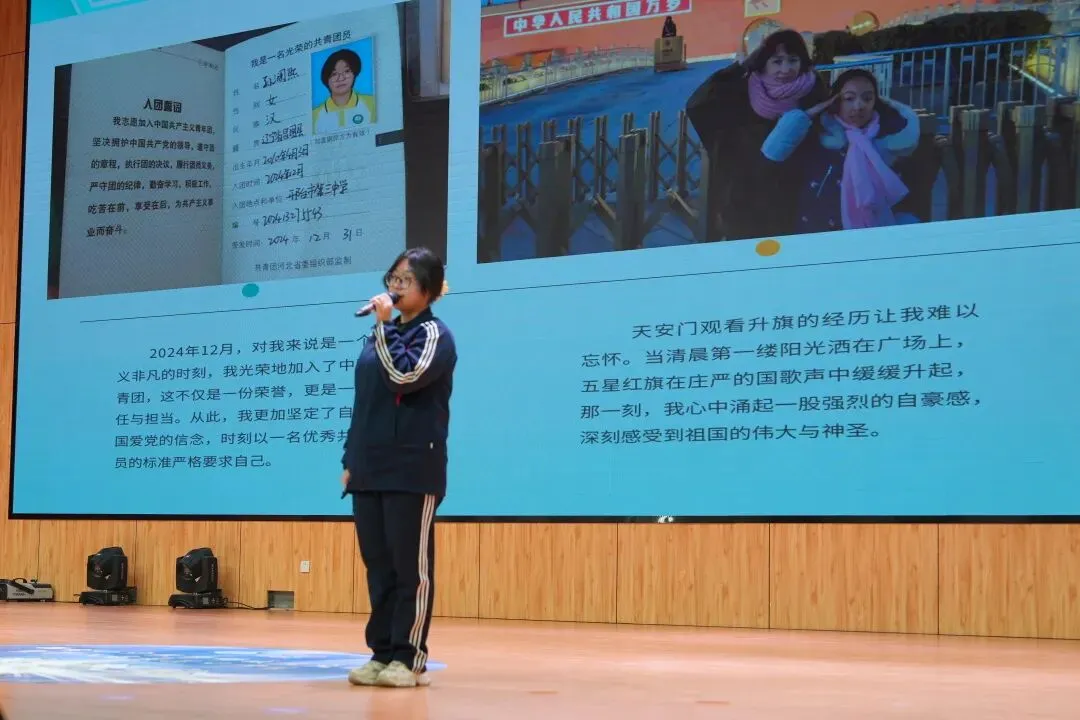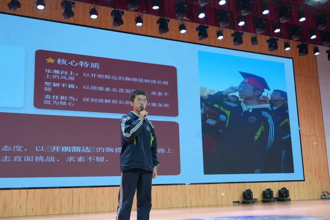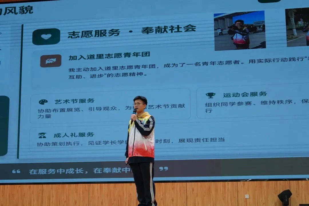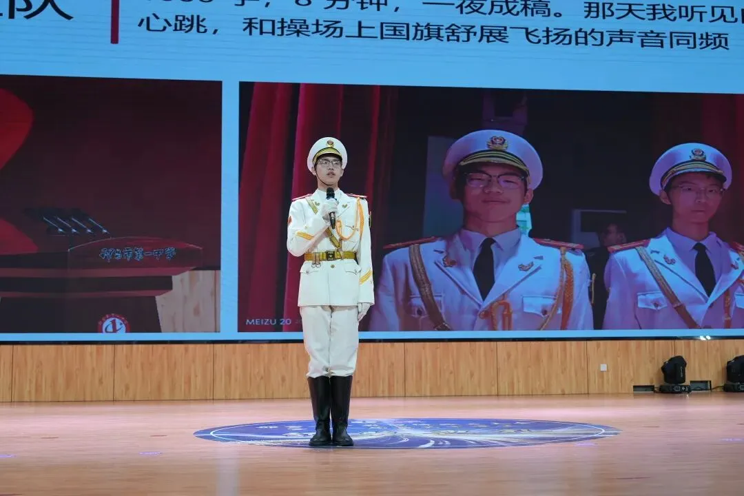 有的同学用陶笛、歌声开场,让演讲充满艺术的温度;有的身着戎装、昂首挺胸,讲述国旗班训练的坚守与荣光;有的则在班级服务、志愿服务中默默耕耘,于平凡岗位诠释担当;还有的通过书法、创意展示,将学科知识与文明素养生动融合。