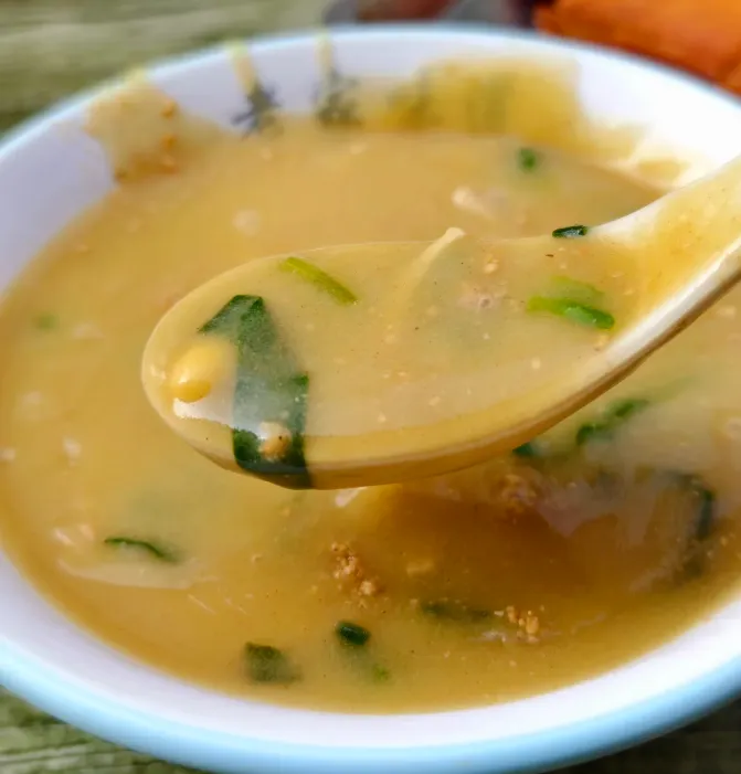 关于豆沫:这东西看着糊涂,喝着明白。小米面做底,得用羊油或猪油把调料爆香了冲进去,再撒上花生仁、黄豆、芝麻。勺子一搅,热气腾腾,咸香口。汤一喝,人就醒了,胃里暖烘烘的,像贴了个暖宝宝。