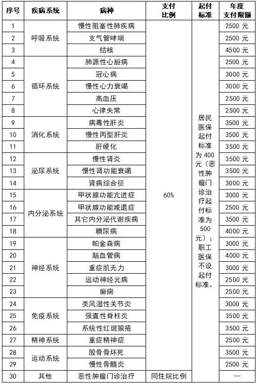 参保居民发生的政策范围内医疗费用,个人负担部分年度累计达到1.745万元后,纳入大病保险保障范围,报销比例及限额见下表。