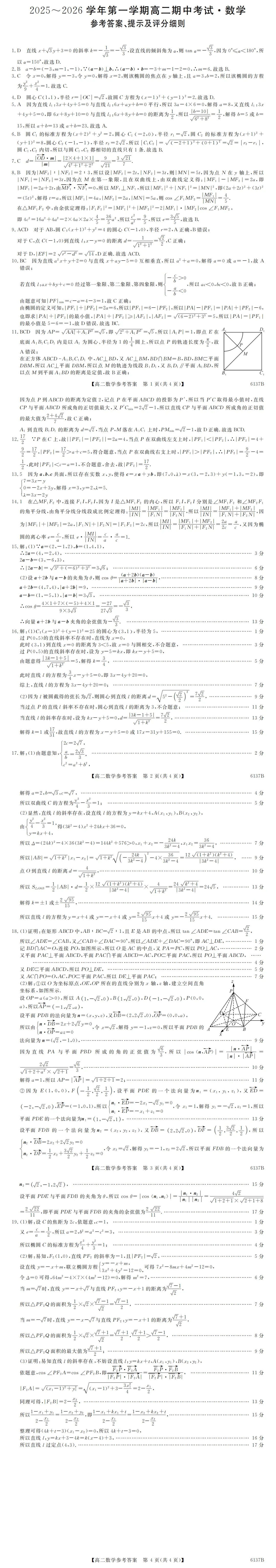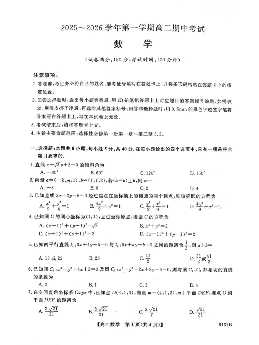 >河北省邯郸市多校联考2025-2026学年高二上学期11月期中数学试题