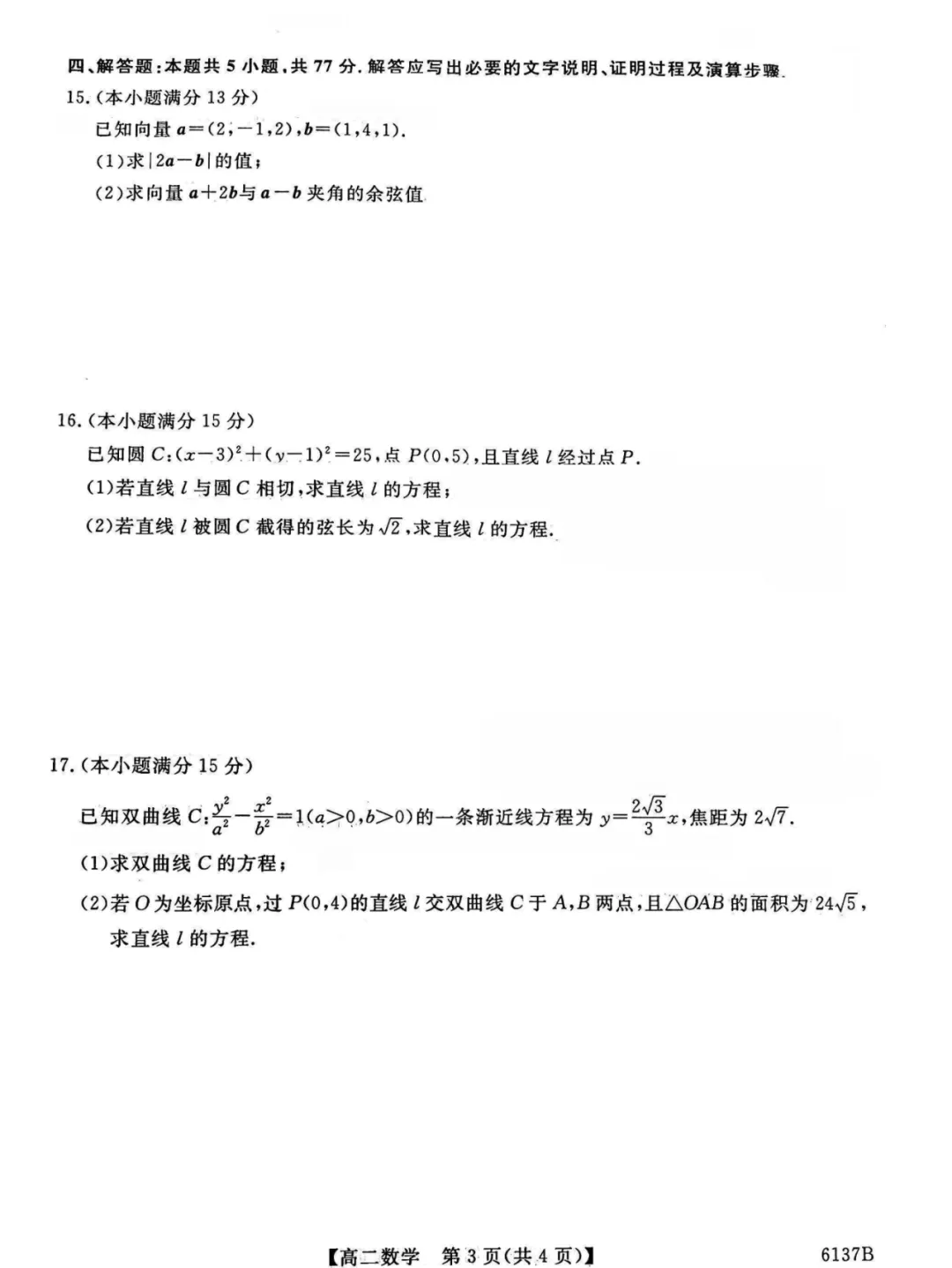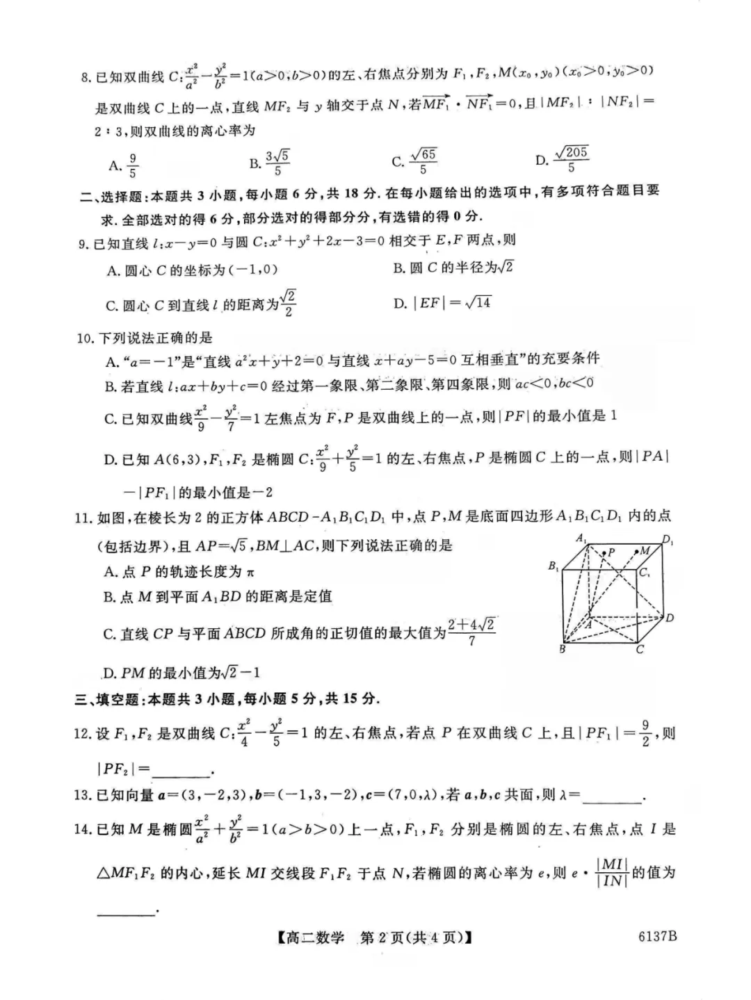 河北省邯郸市多校联考2025-2026学年高二上学期11月期中数学试题