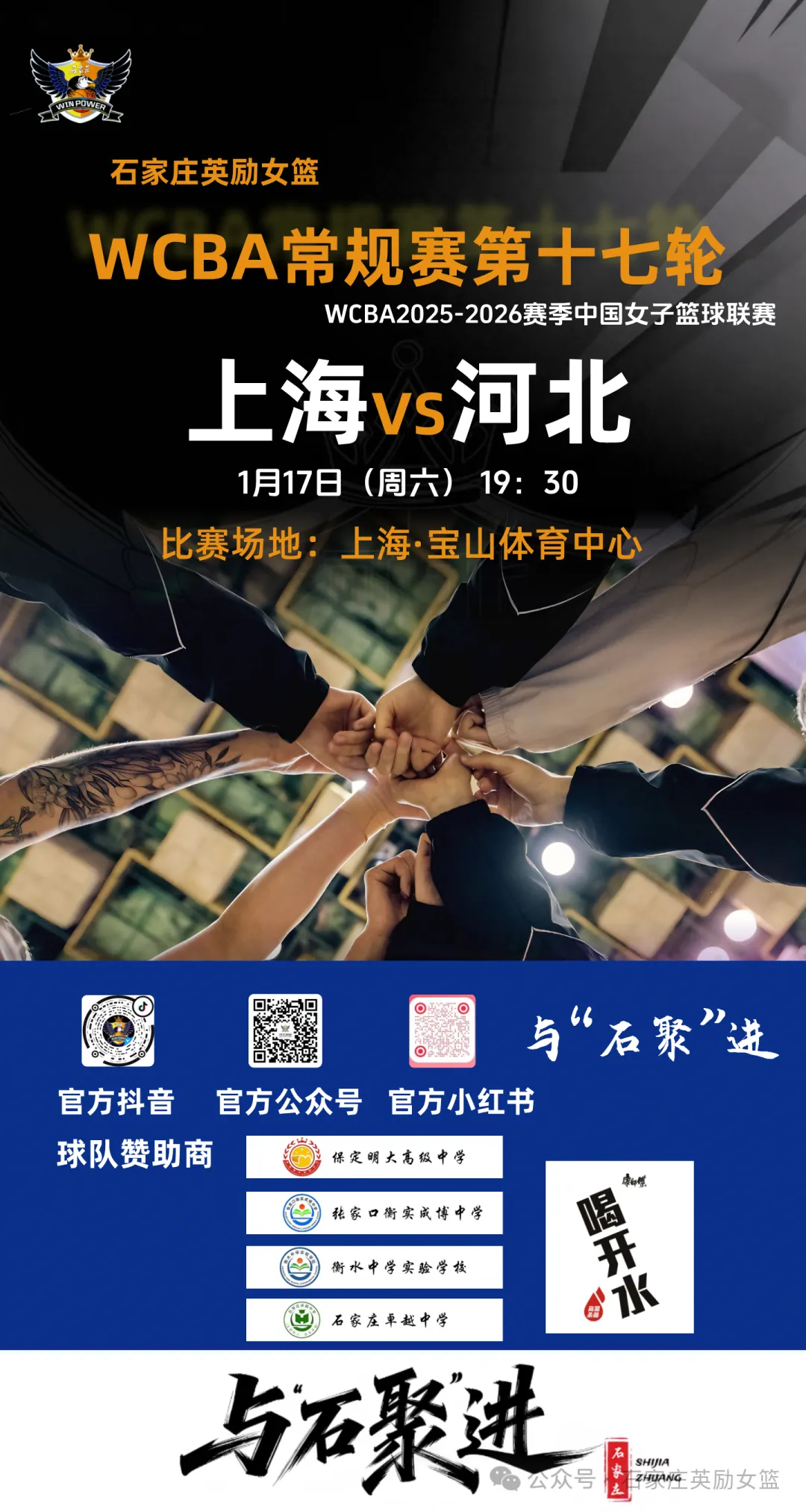 石家庄英励女篮将出战 2025-2026 赛季 WCBA 中国女子篮球联赛常规赛第十七轮赛事,客场对阵上海浦发银行女篮。