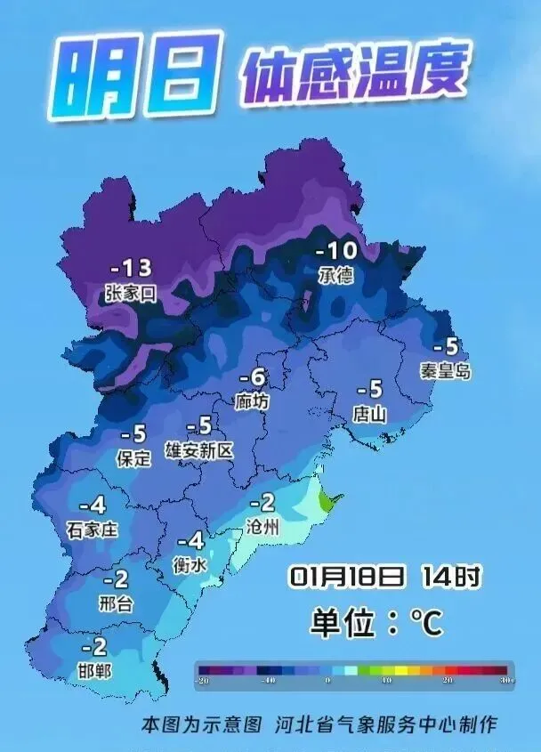 另外,邢台速冻模式已开启,河北气象服务中心给出体感温度示意图,天气就一个字“冷”!外出一定多穿点~