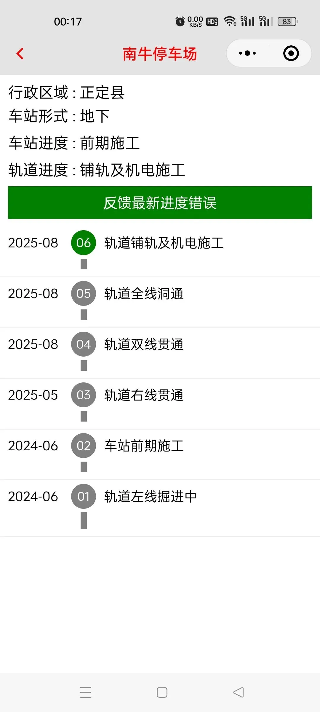 >石家庄地铁1号线二期北段进度跟踪(2026-010