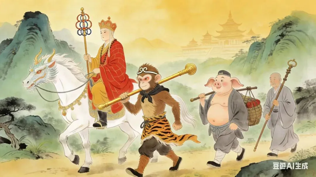 14 引出取经主线:在选拔水陆法会的主持人时,唐僧(玄奘)脱颖而出。观音菩萨化身为疥癞僧人,在法会上现身,指出小乘佛法不足以超度亡魂,唯有西天如来处的大乘佛法《三藏真经》才能普度众生。于是,唐太宗便与玄奘结为兄弟,派遣他前往西天取经。至此,《西游记》的主线故事——唐僧取经,正式拉开序幕。