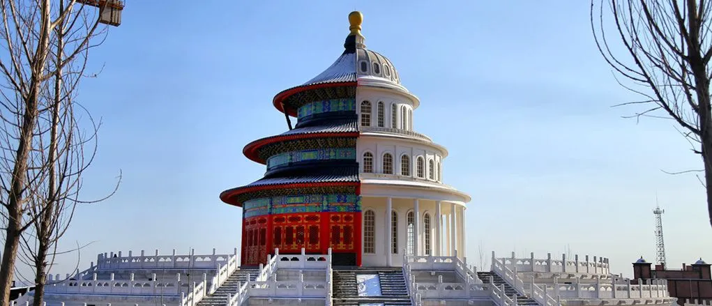 不过这些比起石家庄影视城中的奇葩建筑,那就是小巫见大巫了——一半形似北京天坛,而另一半却形似美国国会大厦的白色外墙圆形建筑。游一个景点,得两种体验,这样的想象力,真是扇贝看了都想鼓掌。