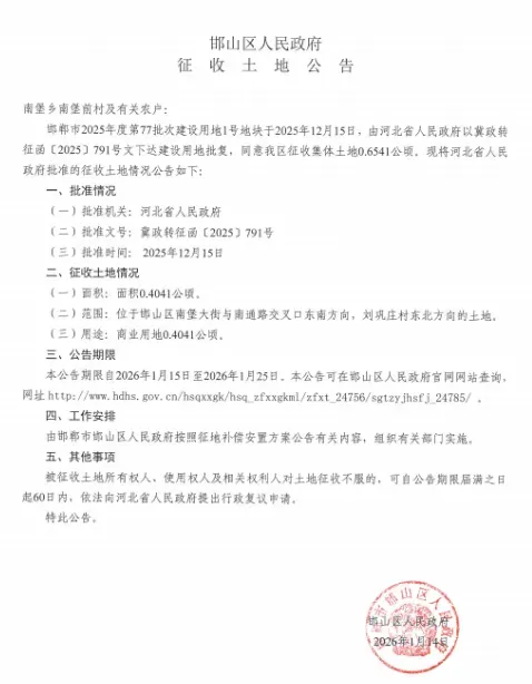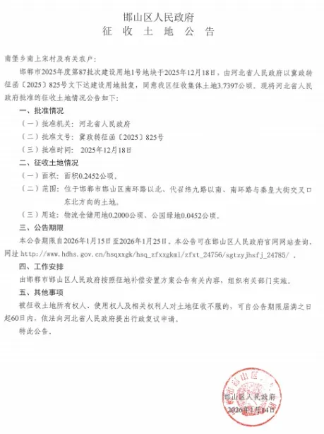 邯郸征地公告