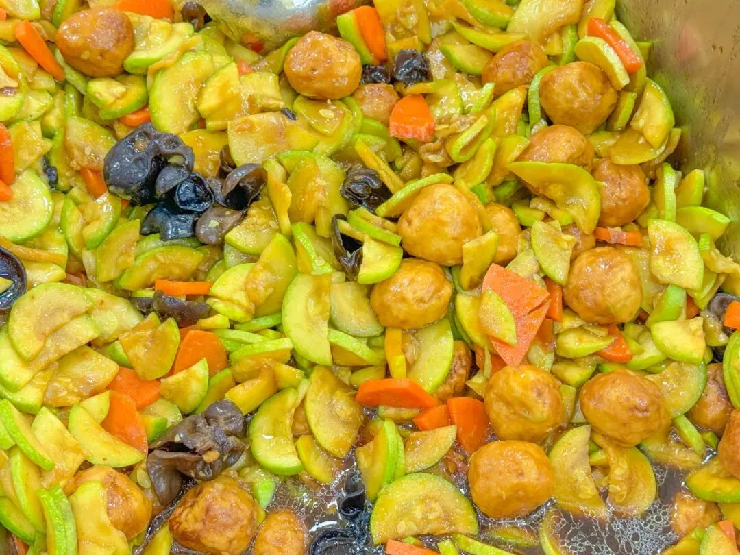 菜品:海味炒鸡(鱼丸5克,土豆10克,鸡块80克)、木须肉(黄瓜50克,红萝卜10克,肉片50克,鸡蛋40克)、橄榄豆腐炒粉条(甘蓝100克、粉条10克)、酸辣土豆丝(土豆100克,红萝卜15克)