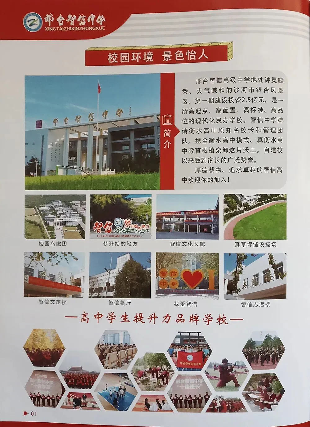 邢台智信高级中学地处钟灵毓秀、大气谦和的沙河市银杏风景区,第一期建设投资2.5亿元,是一所高起点、高配置、高标准、高品位的现代化民办学校。智信中学聘请衡水高中原知名校长和管理团队,携全衡水高中模式、真衡水高中教育根植栾卸这片沃土。自建校以来受到家长的广泛赞誉。