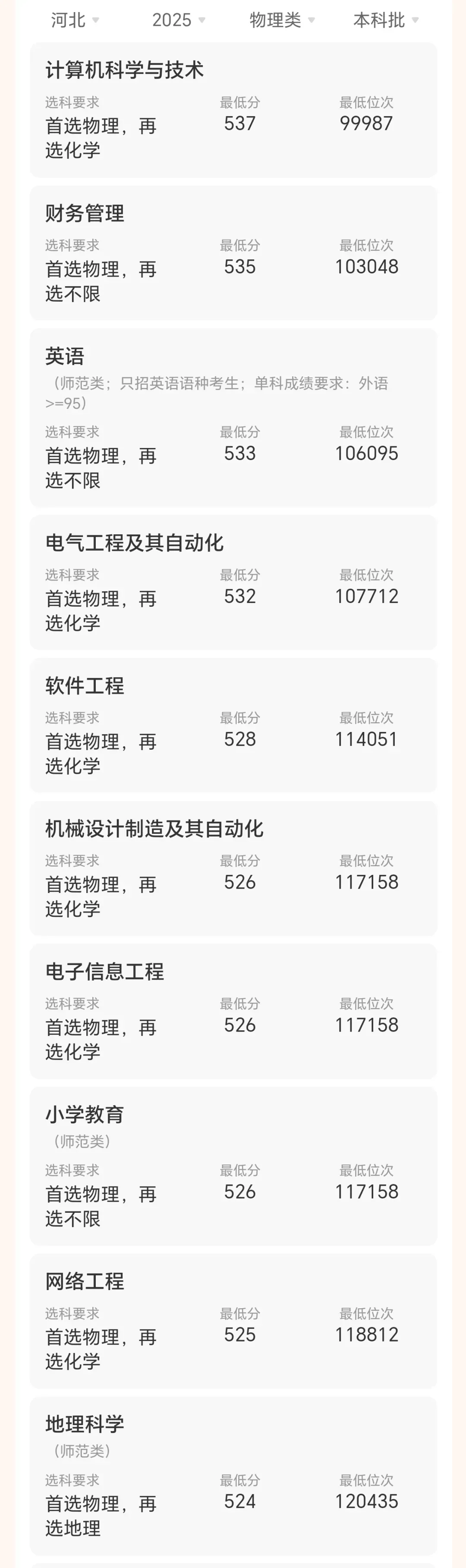 2.邯郸学院的计算机科学与技术也需要537分,高出当年特控线(499分)38分之多。上图专业前十名中最后一名地理科学也要524分,所以不要看不起邯郸学院。你看不起的邯郸学院,也许你还高攀不起呢。