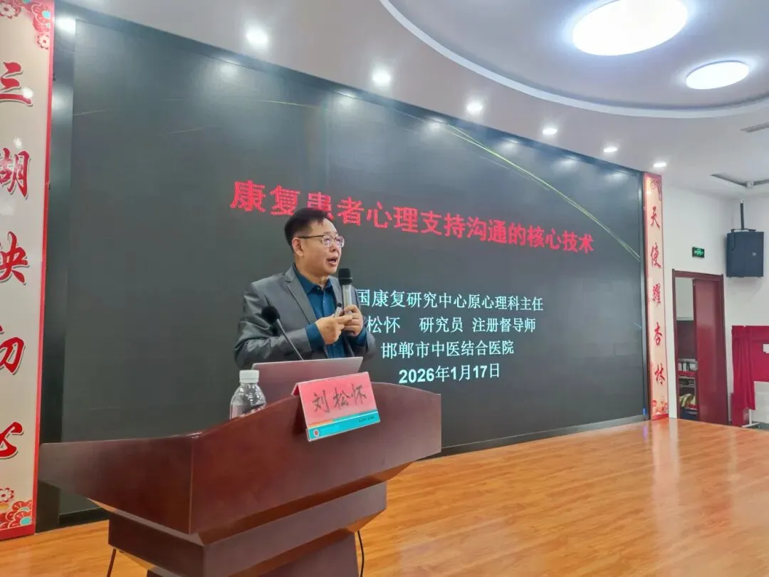 1月17日,邯郸市健康管理协会中西医结合康复分会成立大会暨第一次全体委员会议在邯郸市中西医结合医院举办。中国康复研究所副所长程军,邯郸市卫生健康委副主任周海英,邯郸市中西医结合医院党委书记井永法、院长宋利宏、副院长胡新磊、副院长胡成栋出席会议。大会由邯郸市健康管理协会常务副会长兼秘书长刘邯英主持,并邀请到中国康复研究中心党委委员杜晓霞、心理专家刘松怀、康复专家叶淼等进行授课。