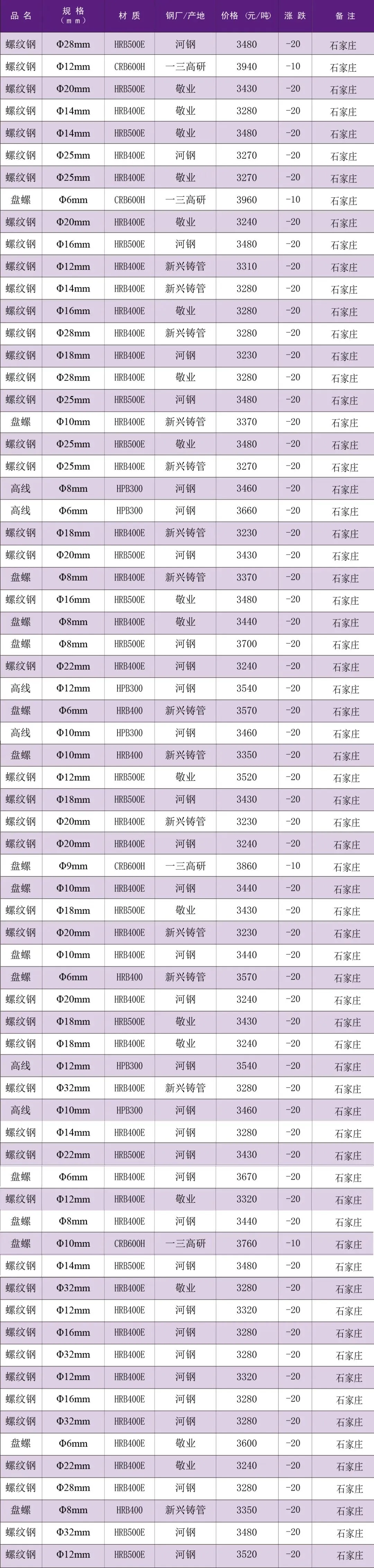 【每日一价】1月19日石家庄市场建筑钢材价格行情