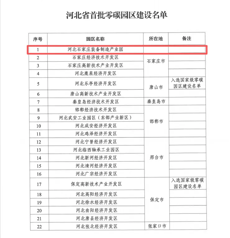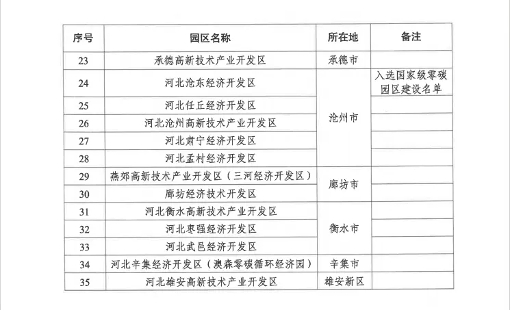 根据《河北省发展和改革委员会 河北省工业和信息化厅关于印发河北省首批零碳园区建设名单的通知》(冀发改环资〔2026〕59号),按照有关工作部署,经园区申报、地方推荐、专家评估和部门审核等程序,现确定河北省首批零碳园区建设名单,并予公布如下: