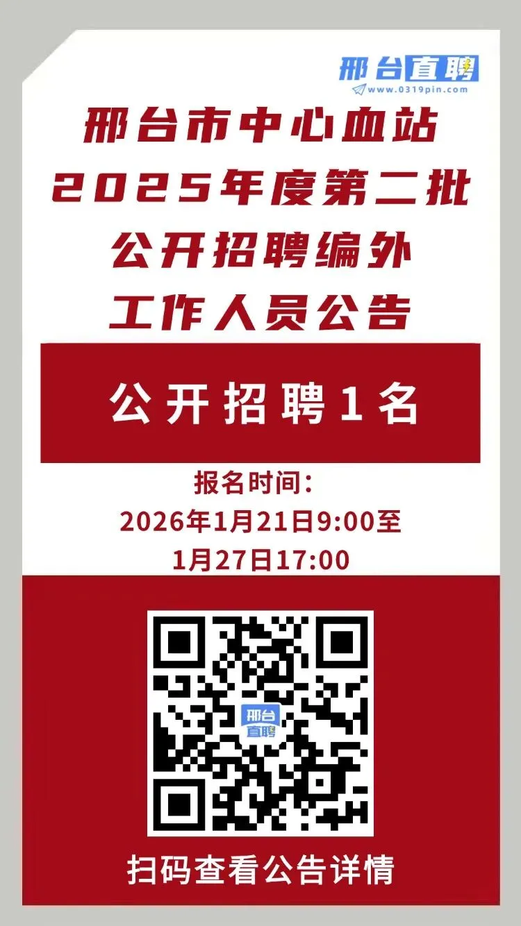 学历不限!专业不限!邢台市中心血站公开招聘1名工作人员