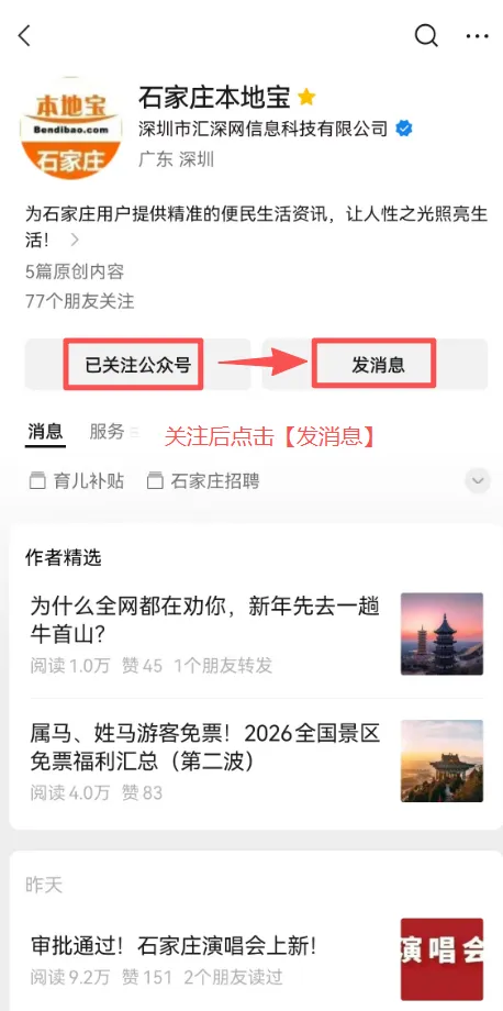 👉推荐服务:扫描或长按识别下方二维码,关注【石家庄本地宝】公众号,把菜单栏切换成对话框,在底部对话框回复【出入境】,即可获取出入境证件全程网办指南及办理入口。