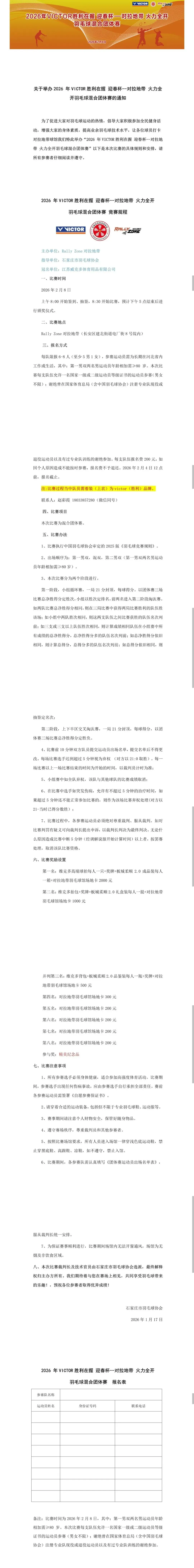 >【石家庄2.8】2026 年VICTOR胜利在握 迎春杯--对拉地带 火力全开羽毛球混合团体赛