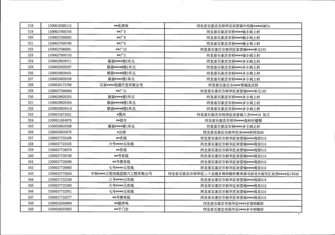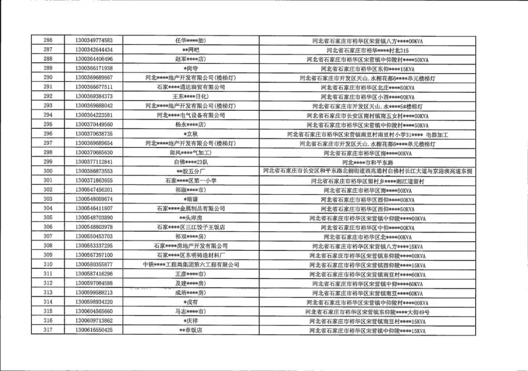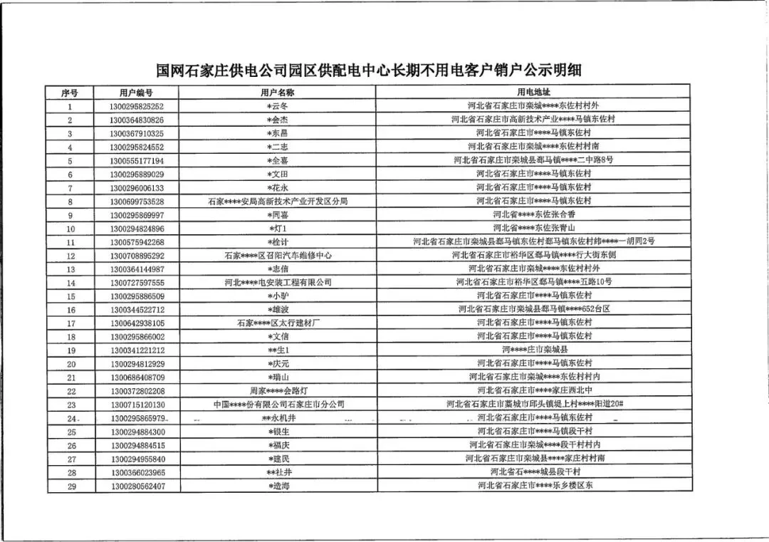 国网石家庄供电公司园区供配电中心长期不用电客户销户公示明细