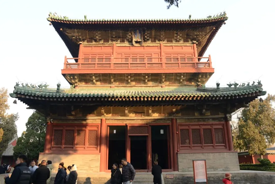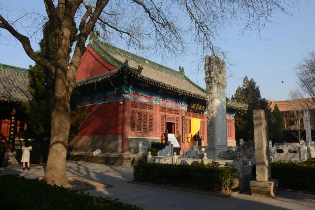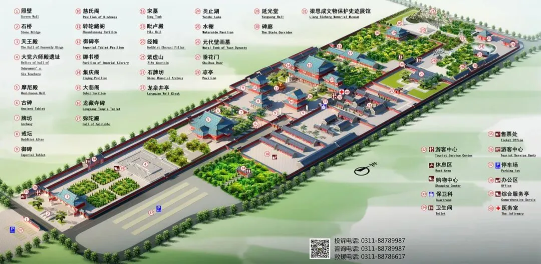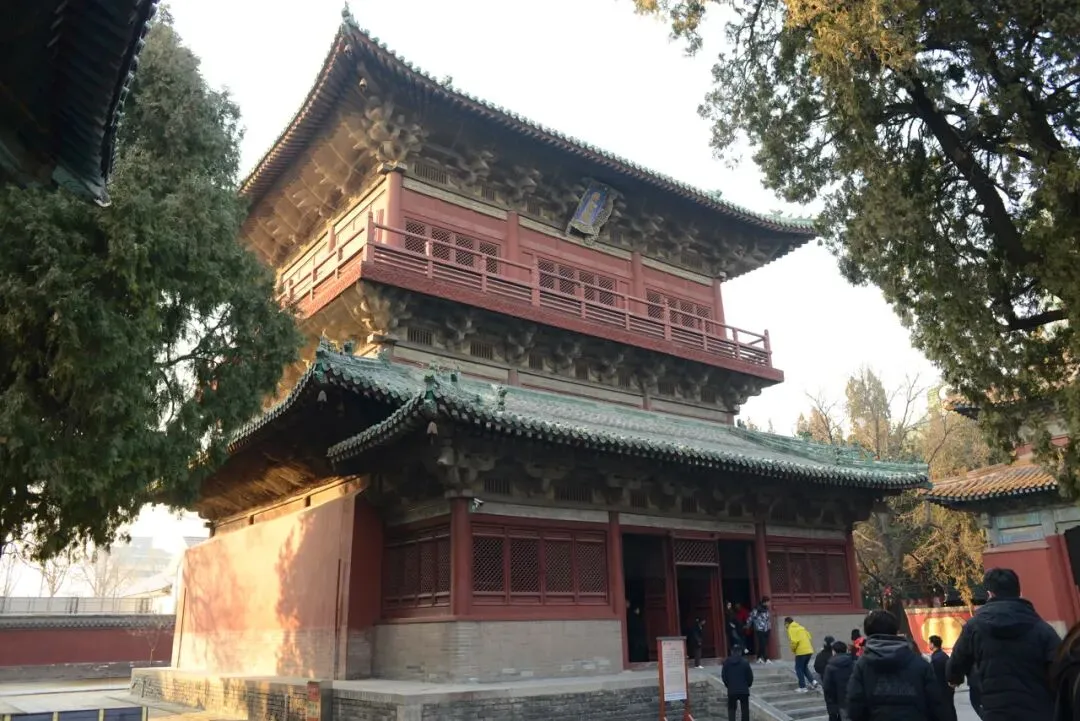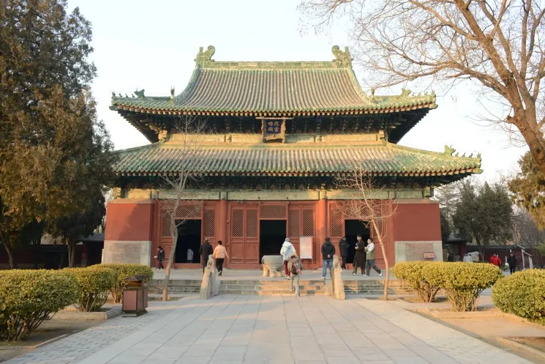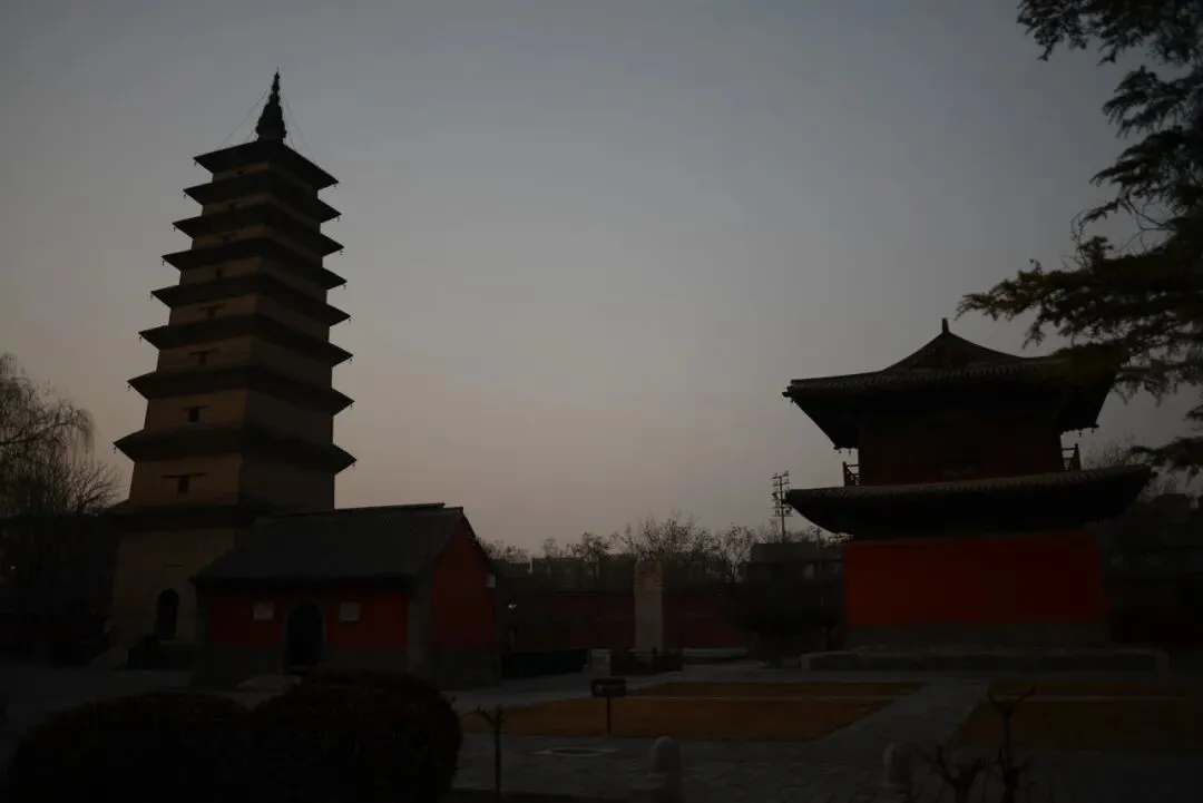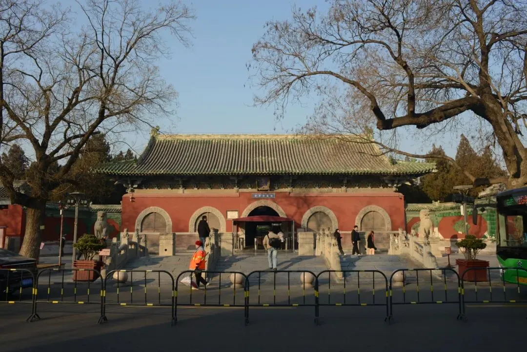 官网介绍的塔:“澄灵塔高30.47米,为八角九级砖仿木构密檐式塔,建在八角形砖砌台基上,台上为石砌基座,再上为砖砌须弥座,束腰正面镶嵌清雍正皇帝谕旨石刻,其余各面均有二壶门花饰。须弥座上是由勾栏、斗拱组成的一围平座,平座上以三层仰莲承托塔身。第一层四正面做砖雕拱形假门,四侧面饰方形假窗,正面圆形假门上端嵌“唐临济慧照澄灵塔”石匾。第二层向上,层高骤减,密檐相接,形成柔和协调的轮廓线。塔顶覆绿琉璃瓦,塔刹由仰莲、宝瓶、相轮、圆光、宝盖、仰月、宝珠等组成。”