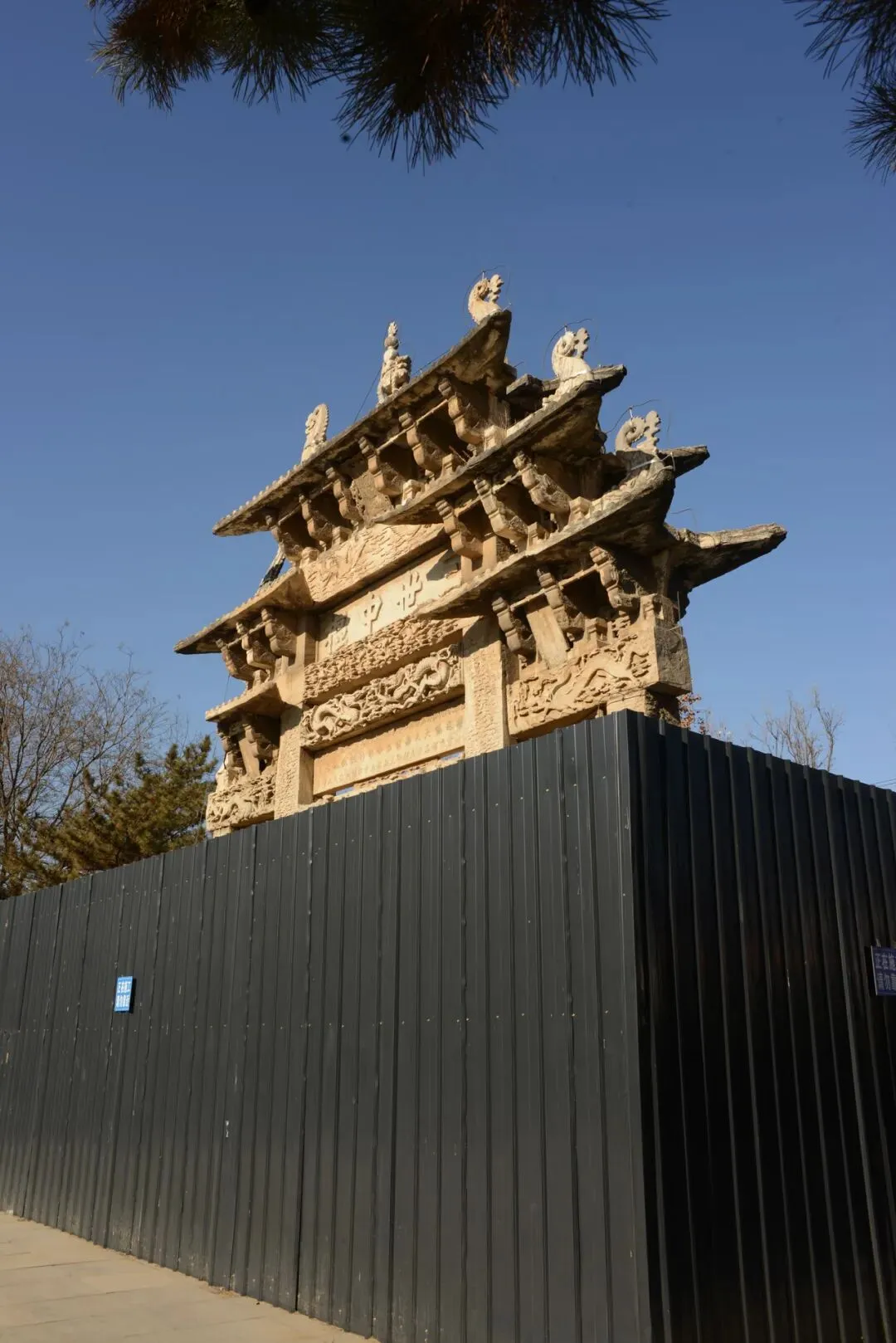 还是不开,不过因为是在路边,虽然不能近距离看,铁栅栏倒是没啥遮挡。旁边的万寿寺山门在新建,寺本身也不开。有唐太子墓和万寿寺塔林两个文保牌。