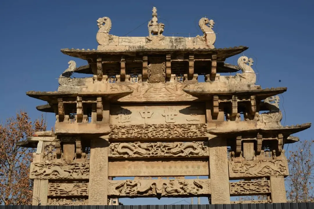 灵寿石牌坊建于明崇祯十四年(1641),为四柱五楼三重檐仿木结构,透雕为其特色。