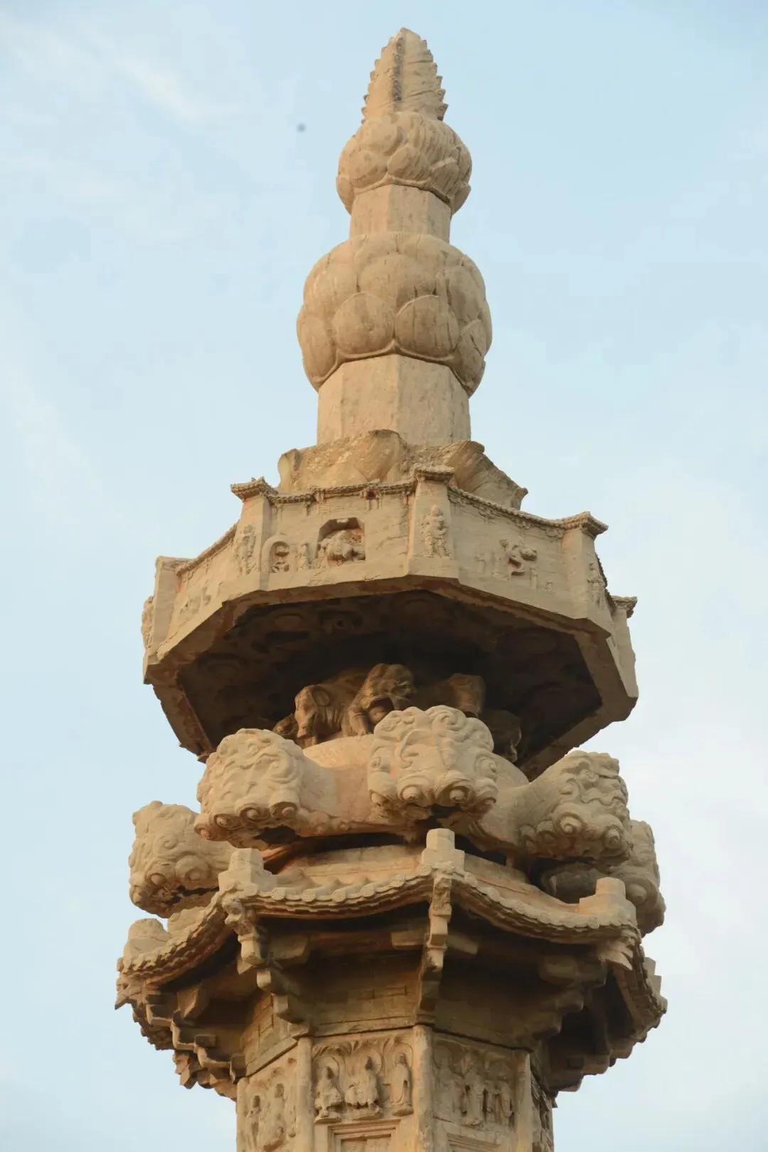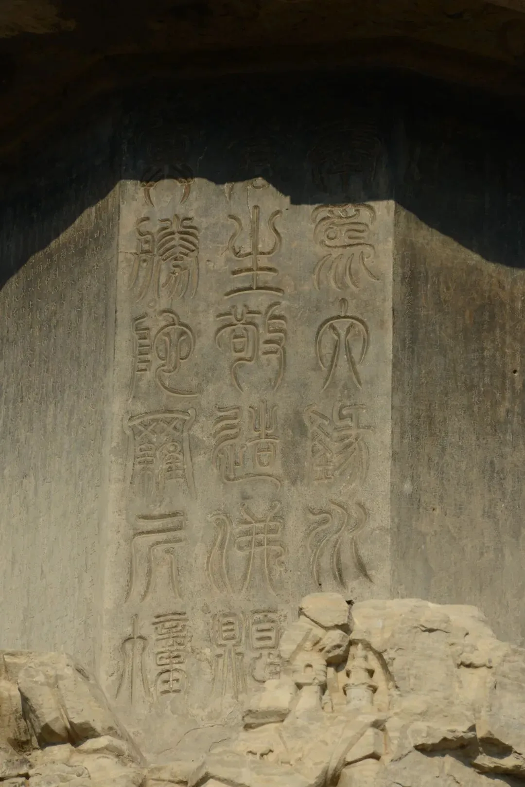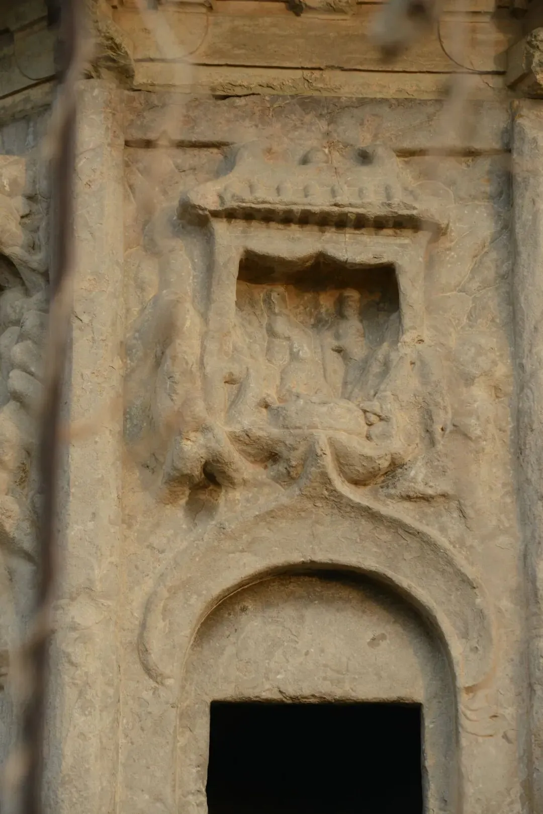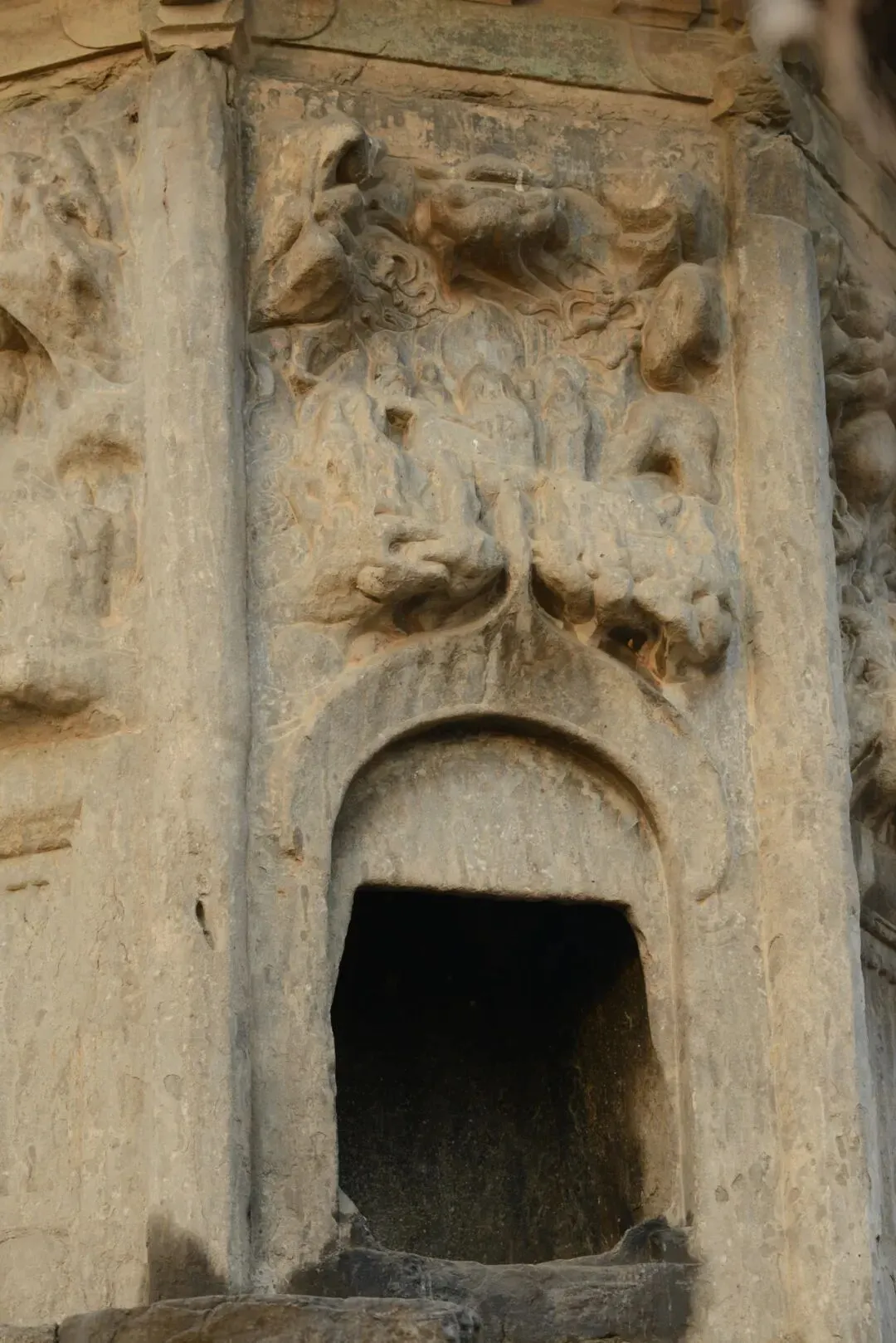南面,只能看到这个上部,中间的铭文,其余各处布满浮雕、透雕: