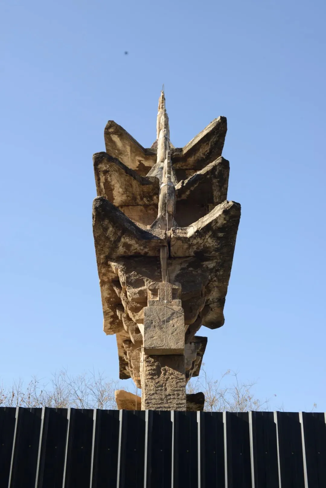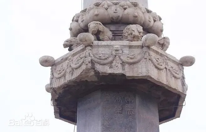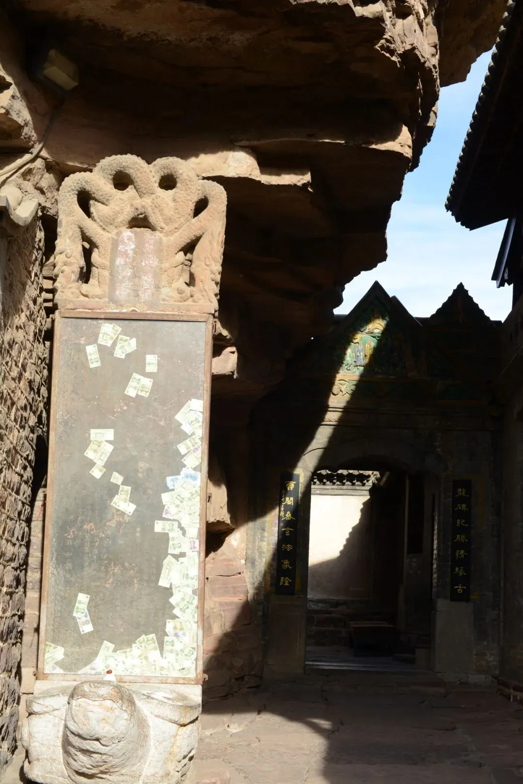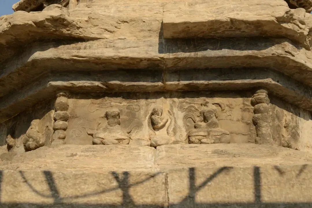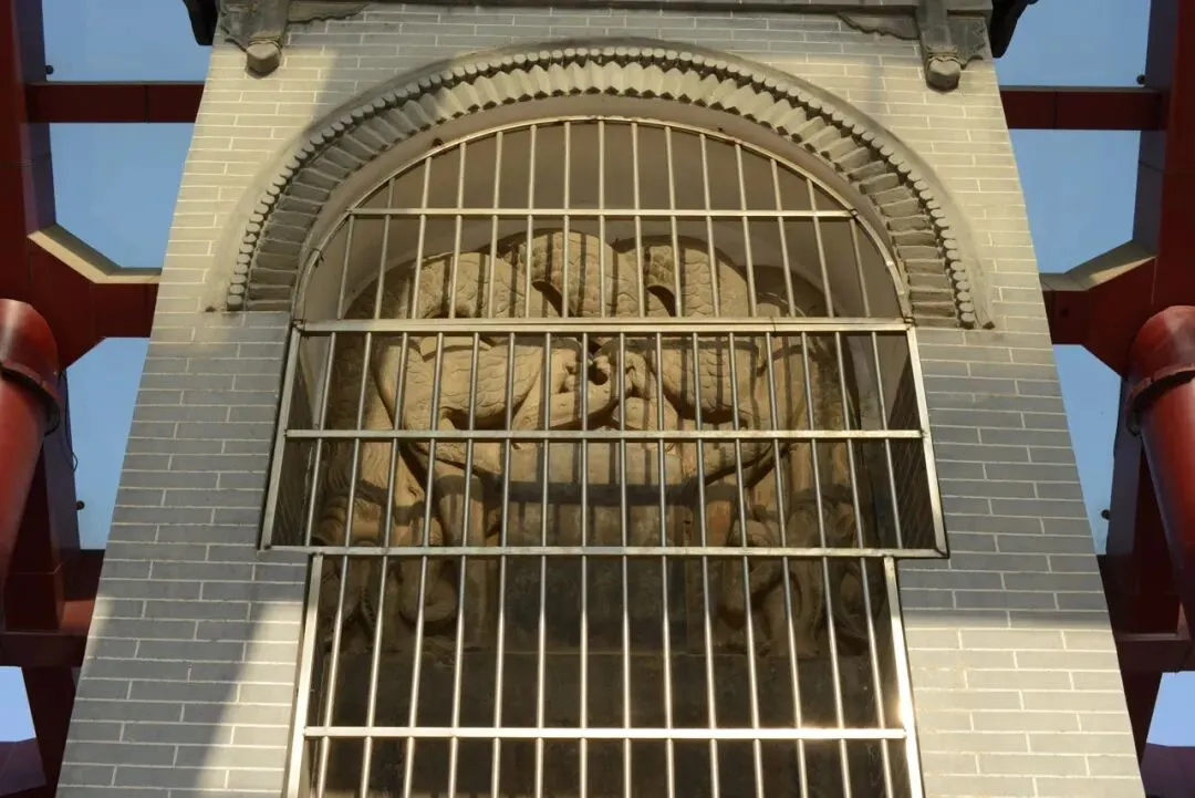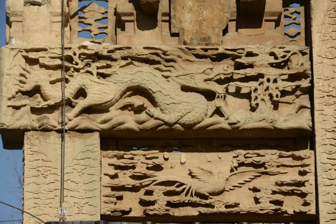 南面,只能看到这个上部,中间的铭文,其余各处布满浮雕、透雕: