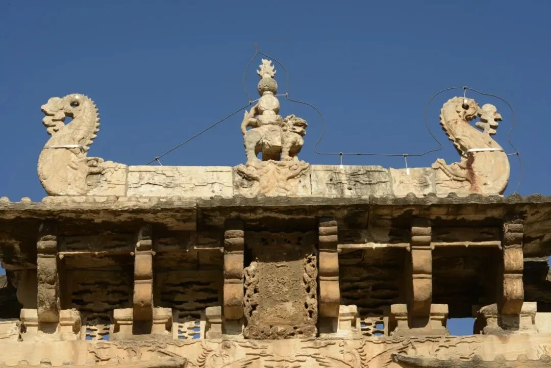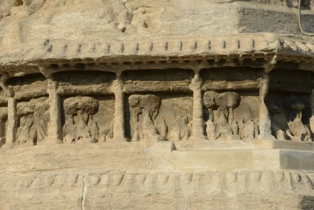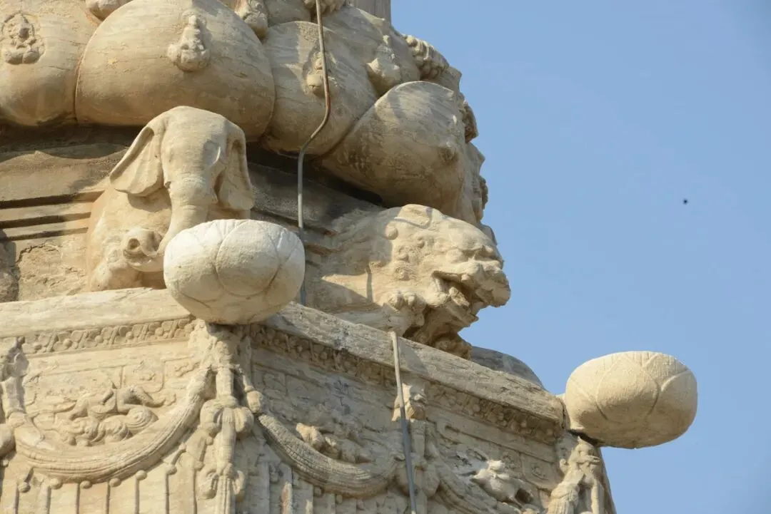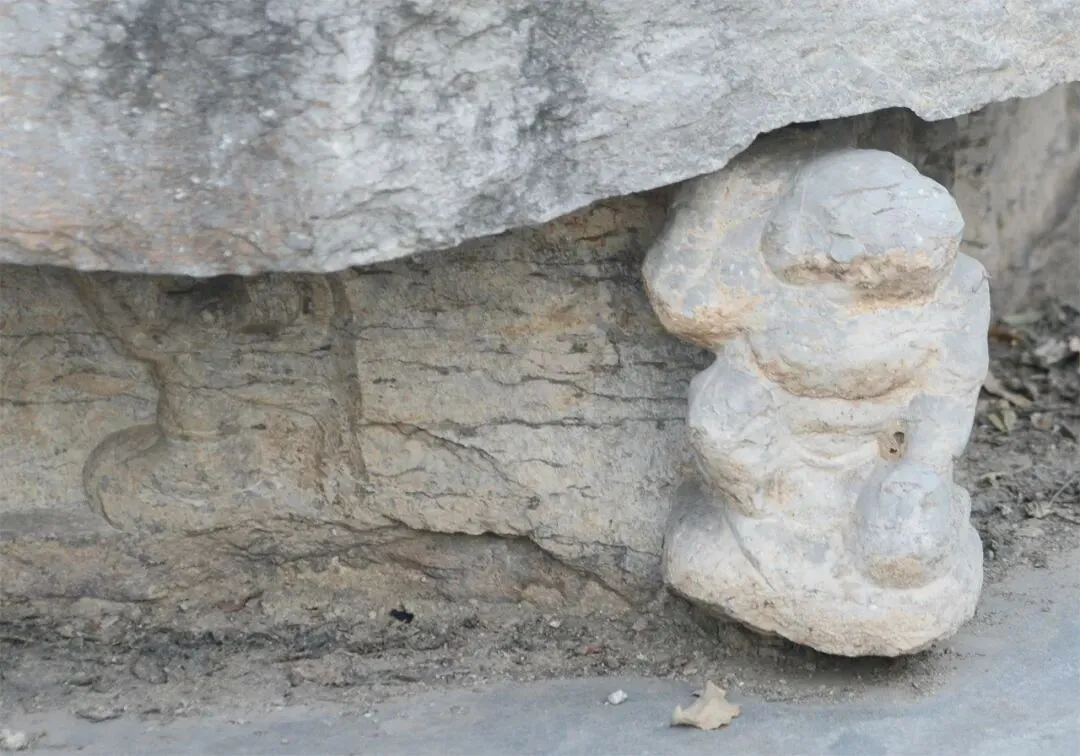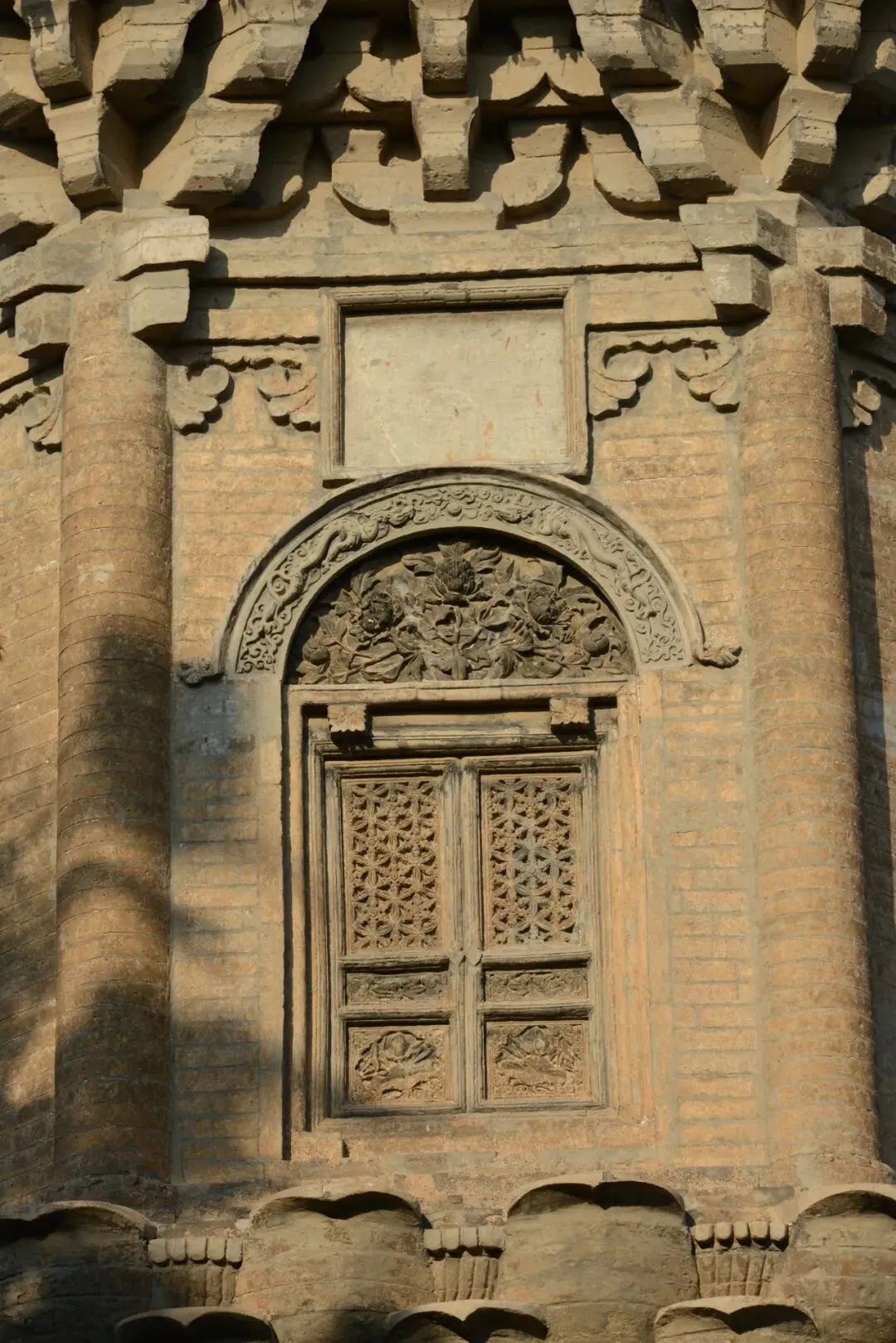 南面,只能看到这个上部,中间的铭文,其余各处布满浮雕、透雕: