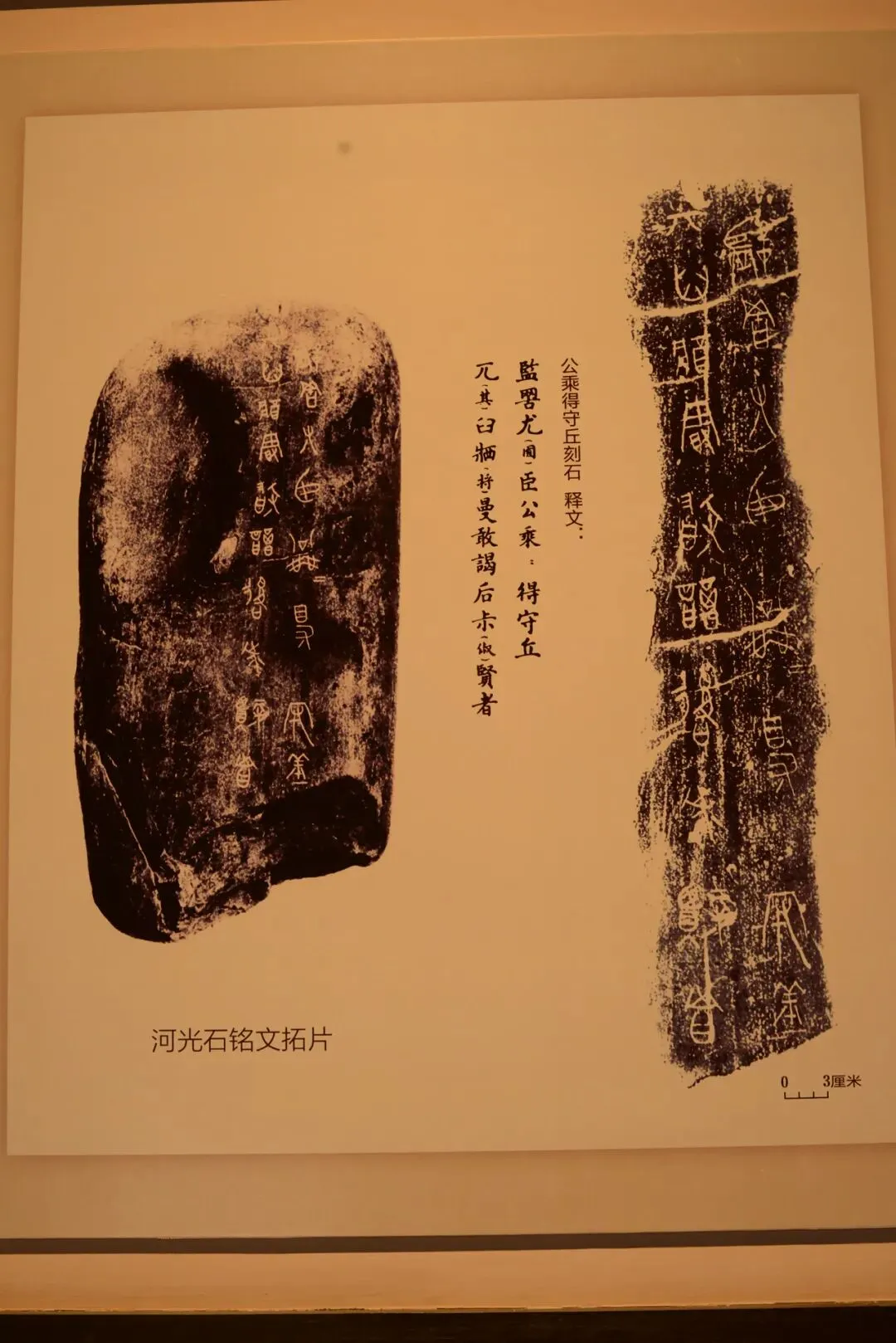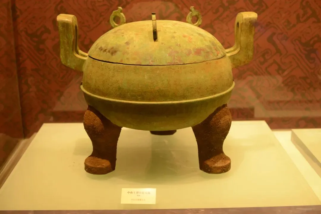 复制的中山王铁足铜鼎,铭文469字,为战国金文最多的铜器,所有金文中仅次于陕西岐山县发现毛公鼎(497或499字,藏于台北故宫):
