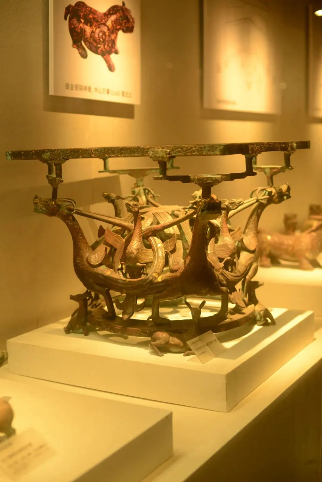 全国195件不可出境文物,河北7件,平山的中山古城就出土了其中2件,错金银四龙四凤方案座(收藏于河北省文物考古研究院),中山王铁足铜鼎(现收藏于河北省博物院)。其余见本系列的前一文保定,中山靖王墓(22)及定州博物馆(14)说明。