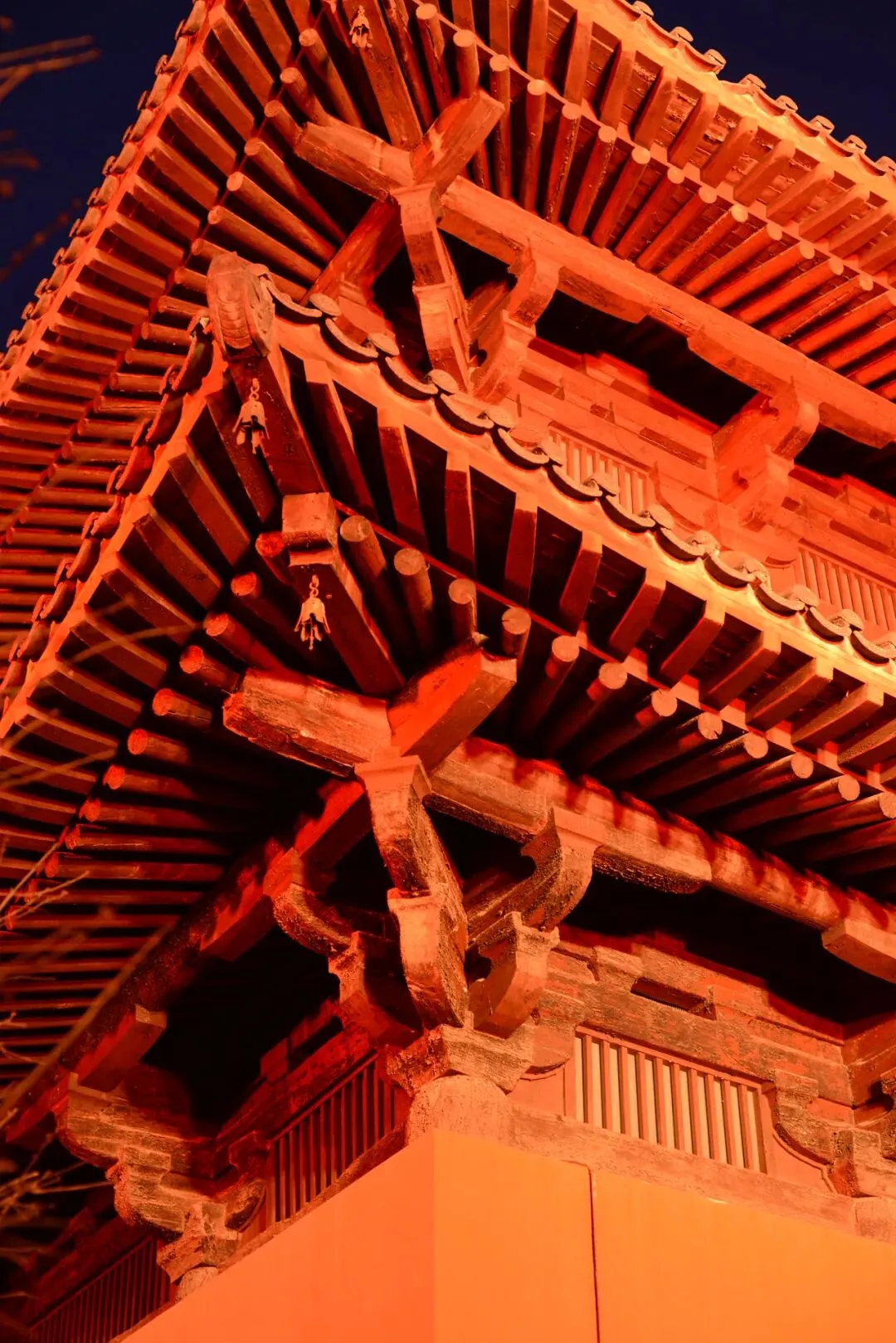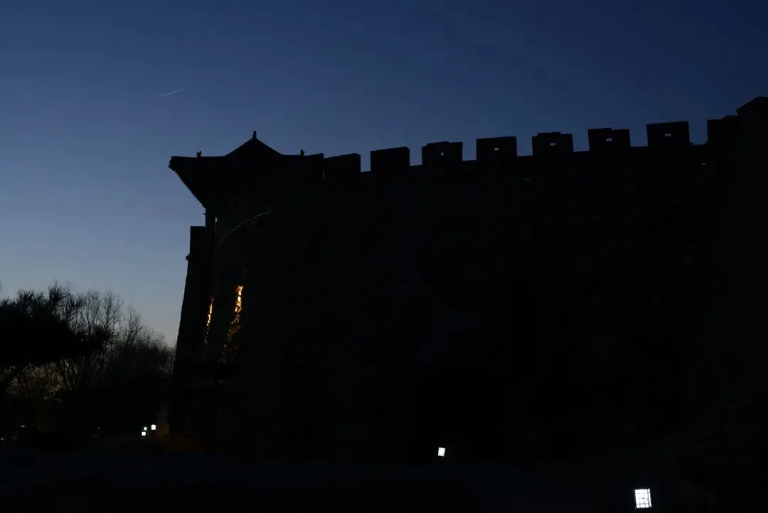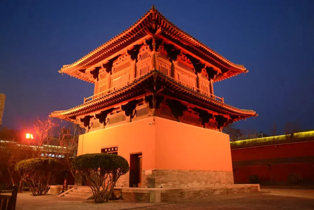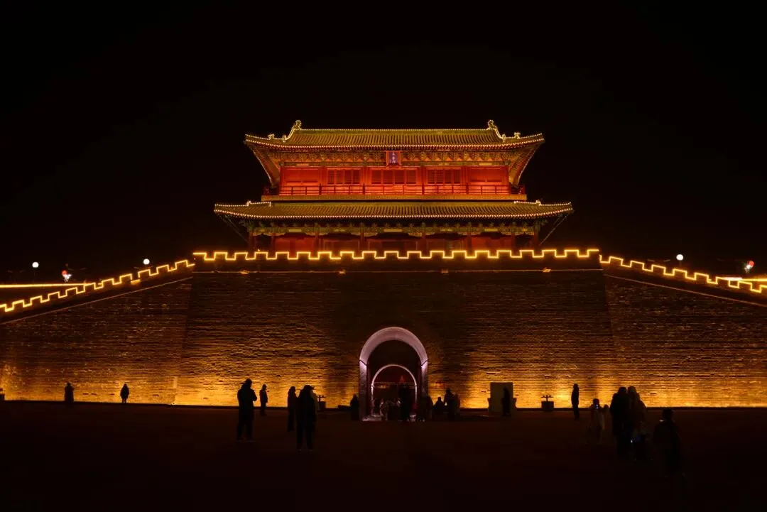 城中轴线的阳和楼也可算成正定城墙一部分,夜景: