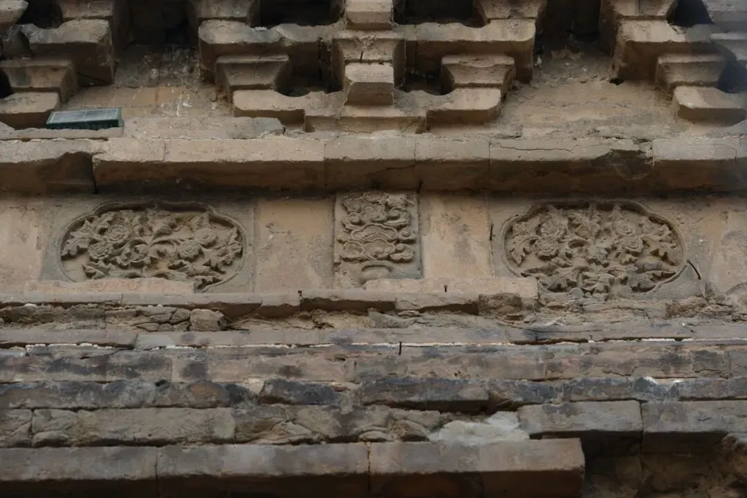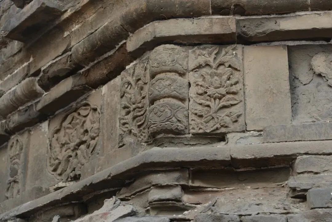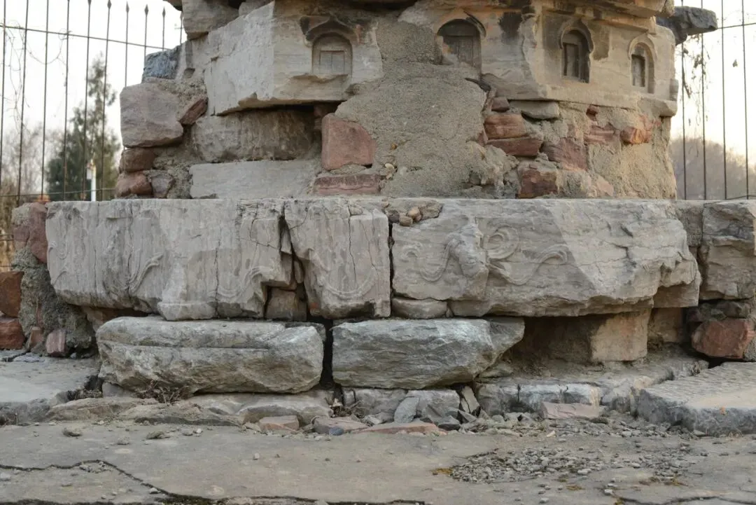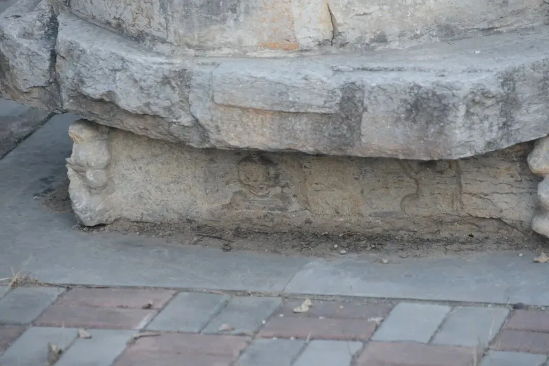 塔基,须弥台束腰雕花、补间铺作一朵、栏板雕花:
