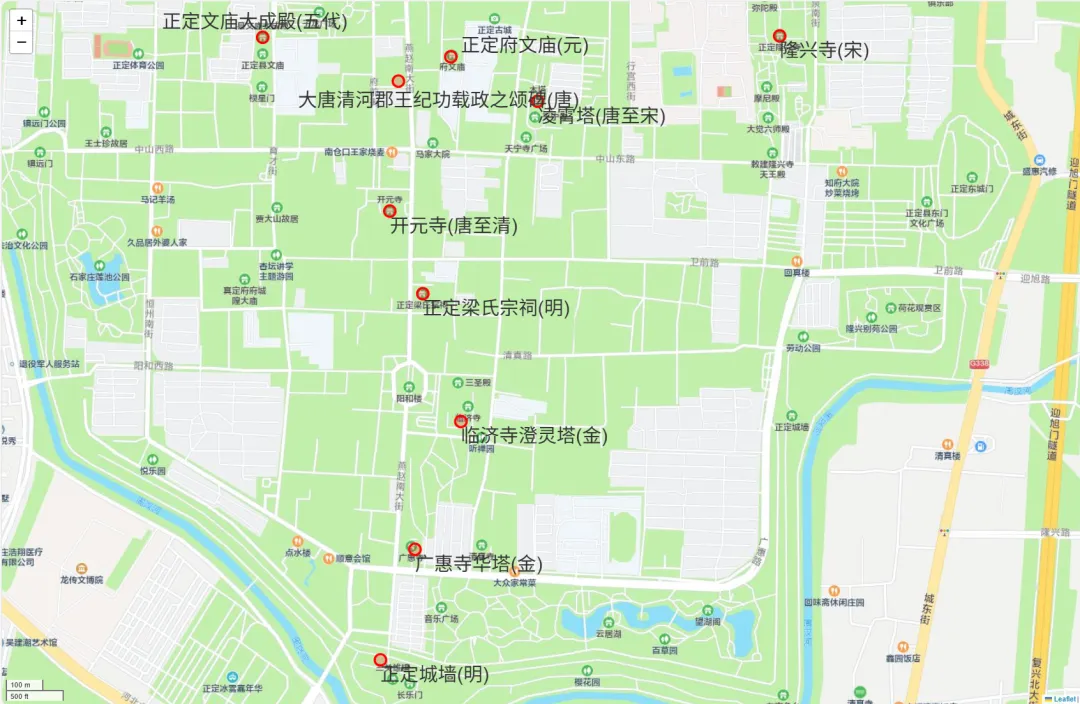 正定:隆兴寺、开元寺、正定城墙、正定博物馆、赵云庙(非国保)、荣国府(非国保,仅路过)、天宁寺(凌霄塔)、正定府文庙、大唐清河郡王纪功载政之颂碑、正定文庙、正定梁氏宗祠、临济寺(澄灵塔)、广惠寺(华塔)