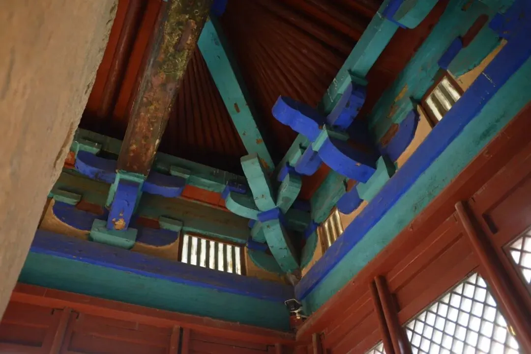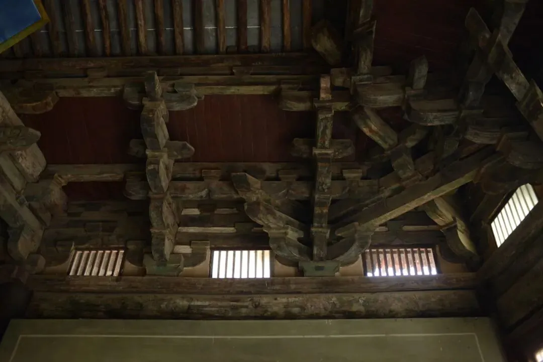以下殿内部分其实都是在外面拍摄的,梁架正面: