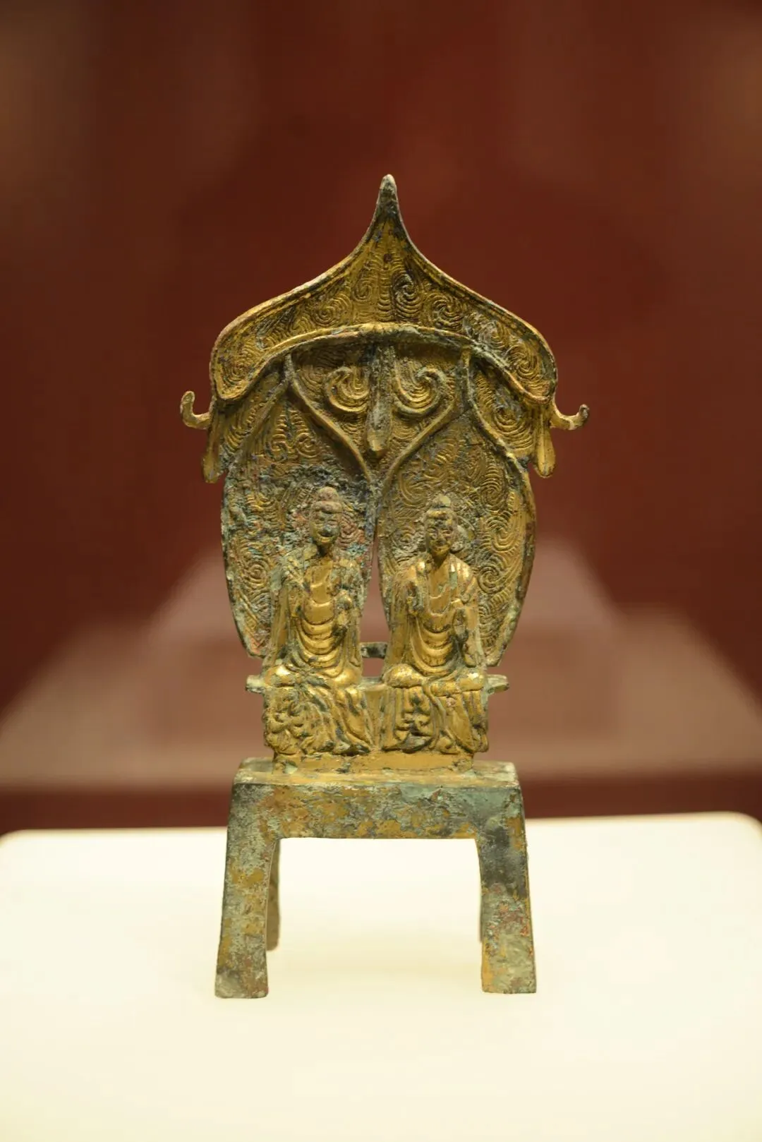 北魏,“胡市迁造”鎏金双佛铜造像: