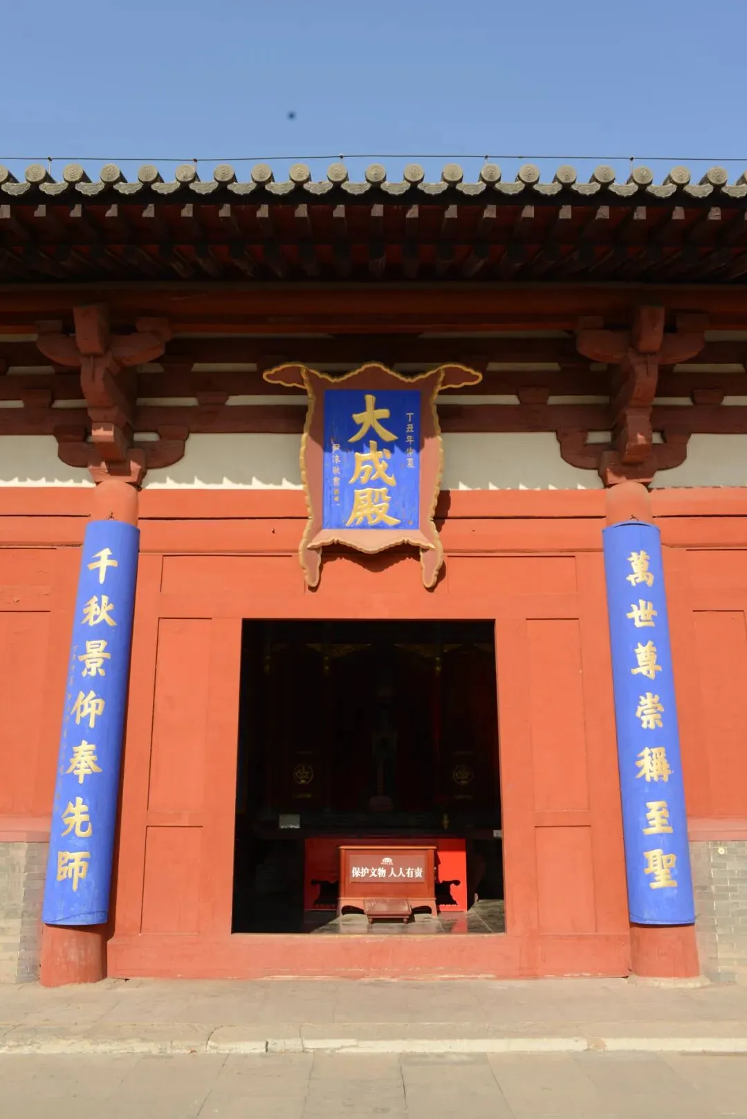 官方描述,“大成殿面阔五间,进深三间,单檐歇山顶,前出宽大的月台,殿顶平缓舒展,柱有明显卷杀,柱头只用阑额,不施普柏枋,斗拱用材奇大,结构简洁疏朗,在梁架、用柱、斗拱等方面均保留早期建筑风格。我国著名古建筑专家梁思成先生称其为唐末五代遗物。1991年10月,国家文物局专家罗哲文先生考察后,指出此大成殿要比山东曲阜孔庙大成殿早五六个世纪,是我国现存最早的文庙大成殿。”